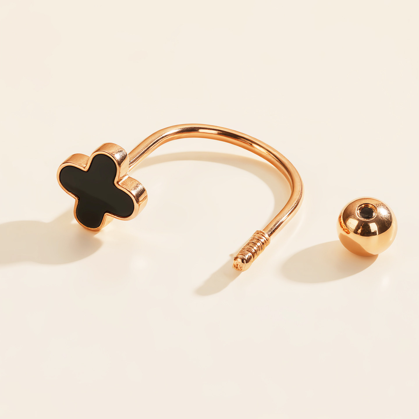 18k螺纹耳饰圆形珠耳堵螺丝耳钉饰品diy配件玫瑰金拧螺丝耳堵配件