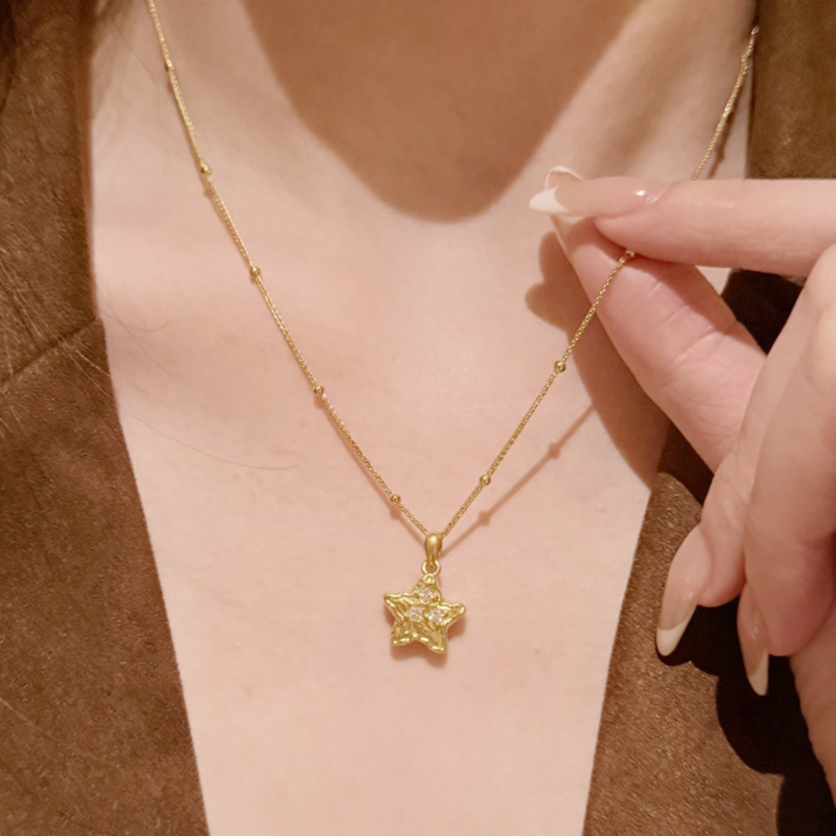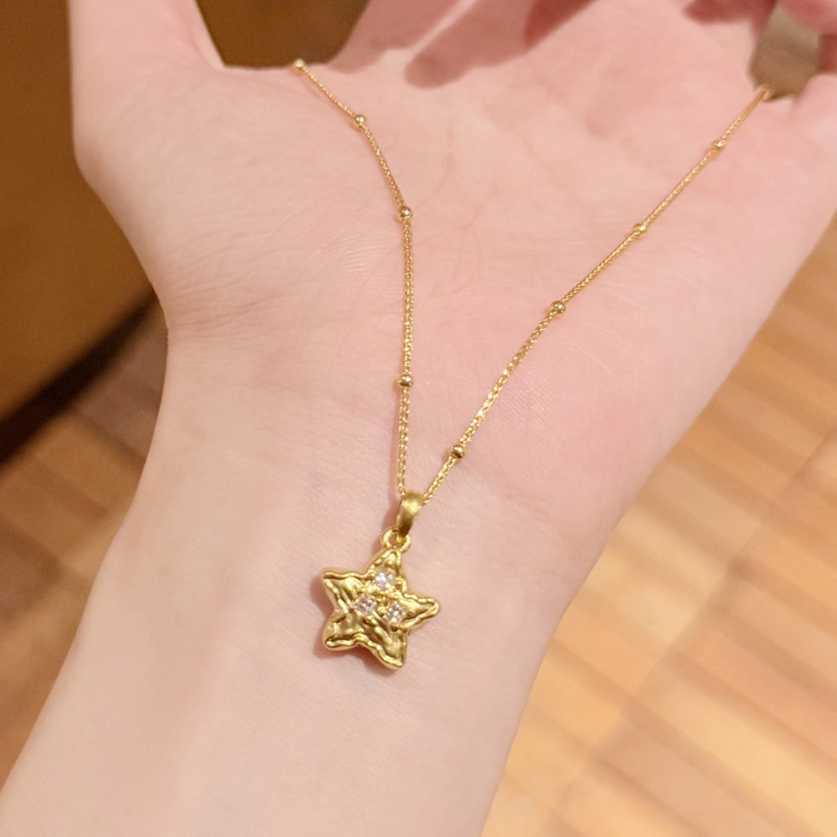 吉盟珠宝999足金吊坠女款幸运海星5D黄金点钻挂坠ins风闪亮五角星