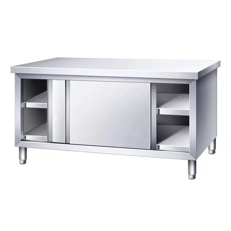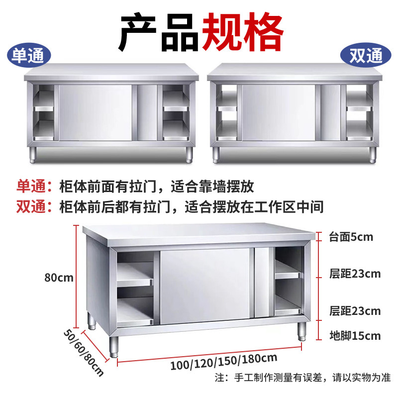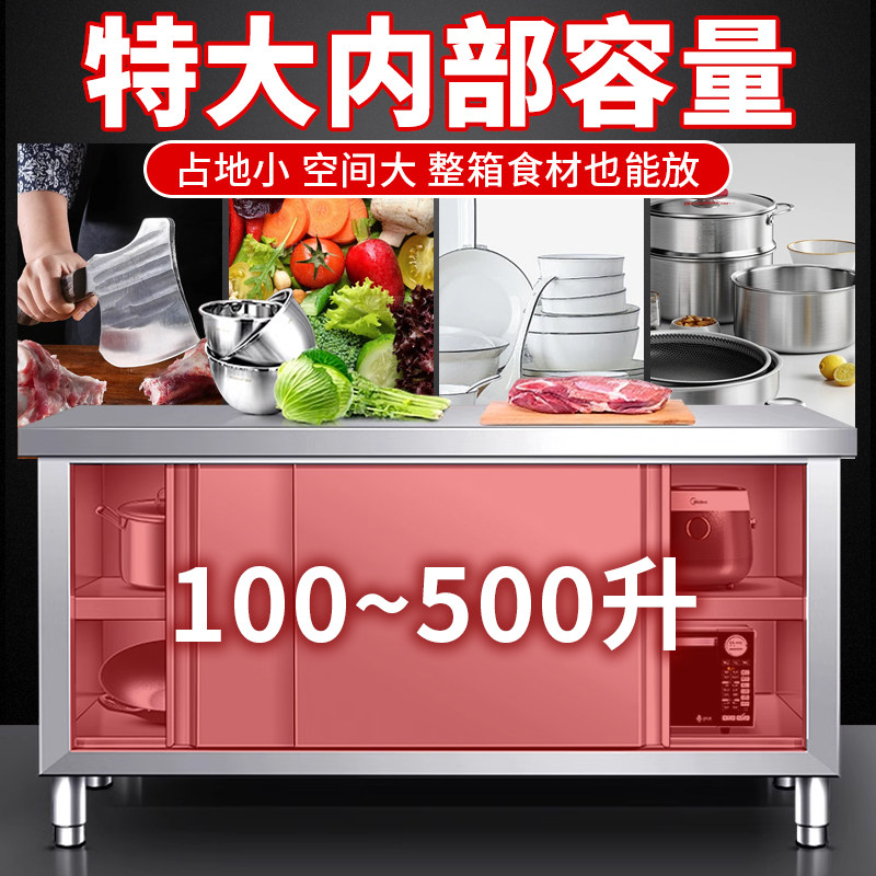 1.2厚焊接304不锈钢拉门工作台厨房专用家用操作台拉门打荷台橱柜