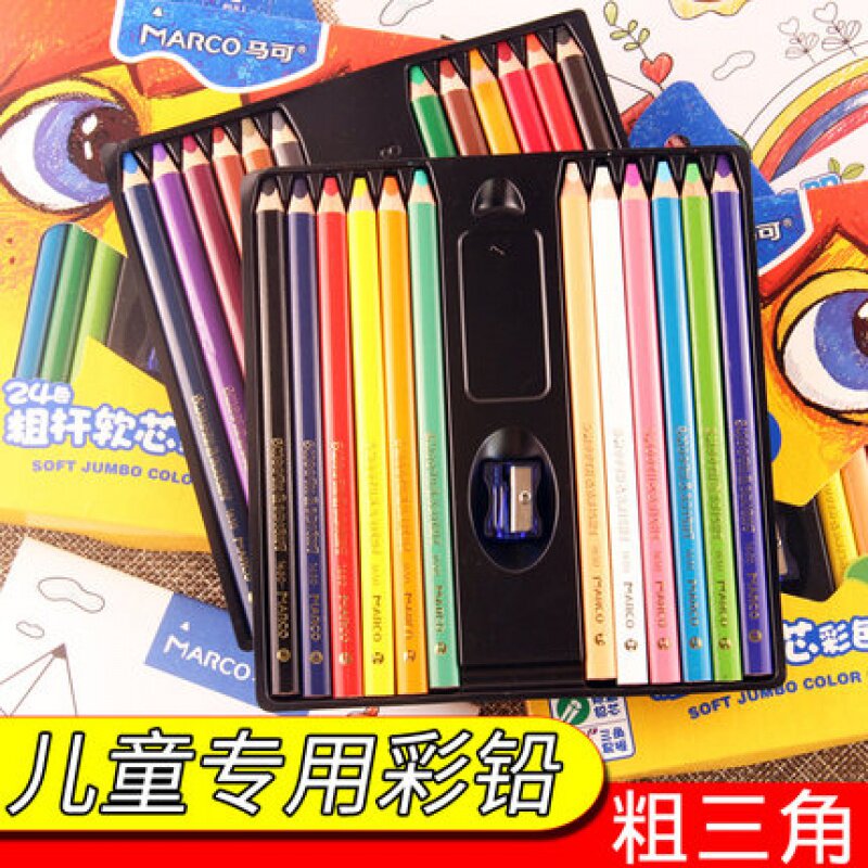 MARCO马可彩铅24色儿童彩色铅笔12色美术绘画三角杆1650填色涂色