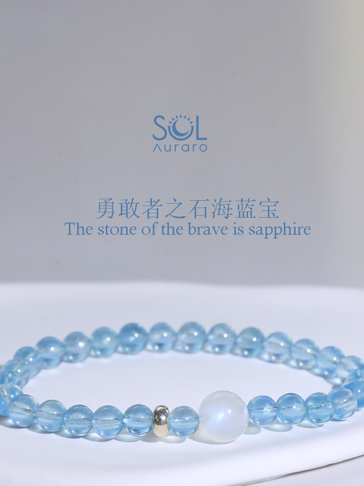 SOLAURARO【勇敢者之石】巴西海蓝宝手串手链月光石高端礼物