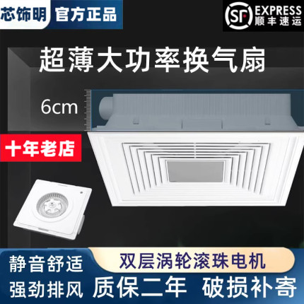 集成吊顶排气扇卫生间大功率换气扇300x300超薄厕所排风扇嵌入式