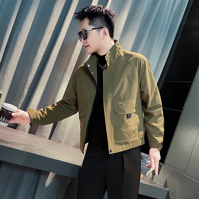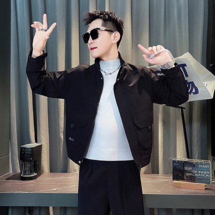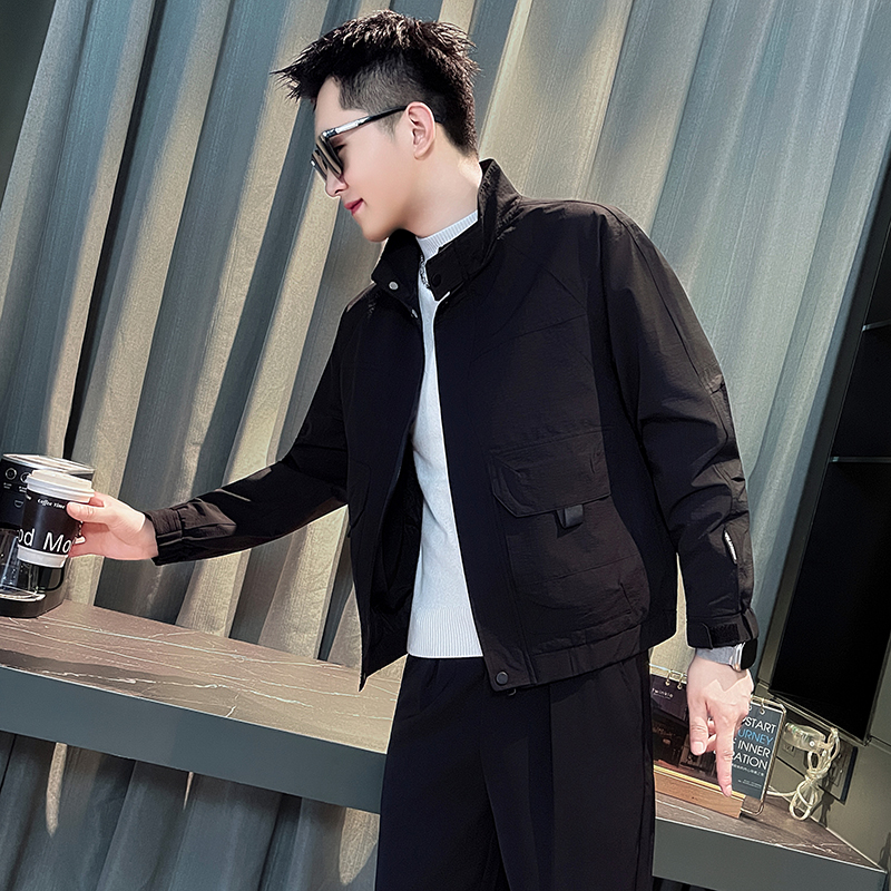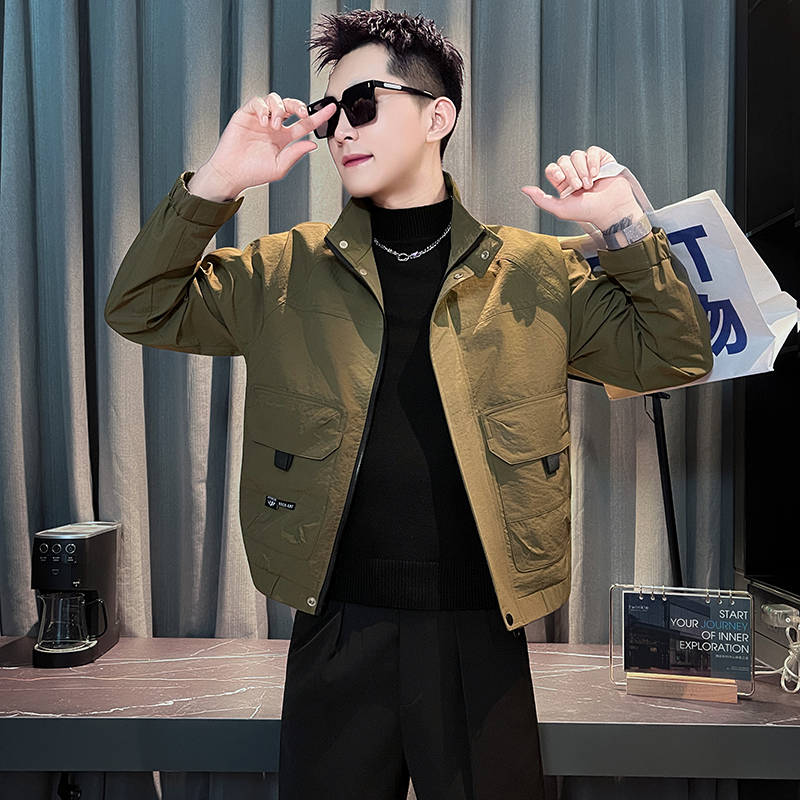 25秋季新款xs小码小号工装褂子纯色设计感大口袋修身夹克外套潮男
