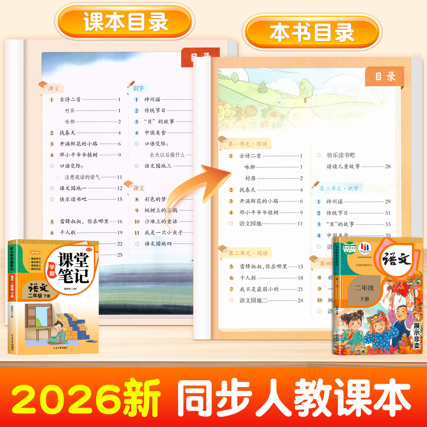 2026新版二年级下册课堂笔记人教版语文数学全套 小学教材全解解读教辅同步课本正版二下课前预习复习资料书2年级上册随堂学霸笔记