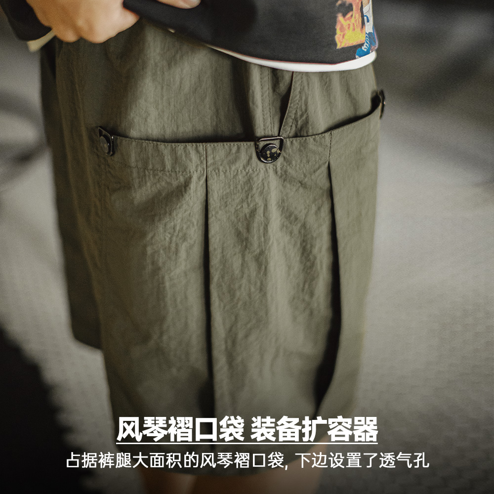 马登工装美式复古风琴大口袋军绿色短裤直筒梭织薄款五分裤男夏季