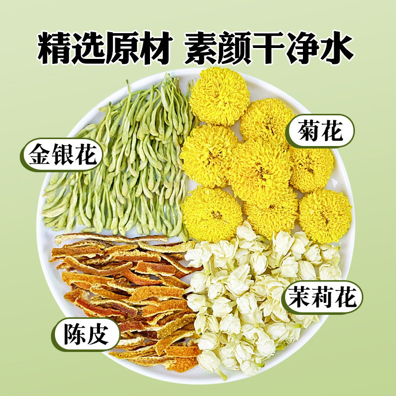 三花陈皮茉莉花金银花菊花茶熬夜养生三角茶包男女生泡水喝的东西