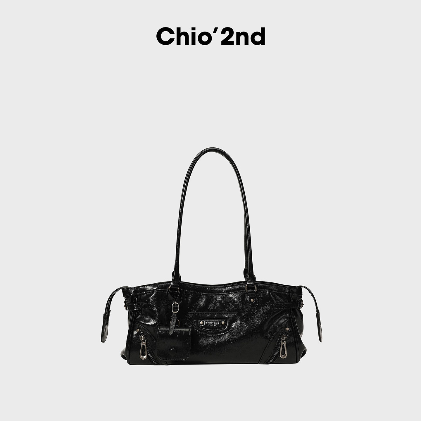 Chio’2nd腋下包包女式2025新款高级感轻奢黑色法棍包手提单肩包