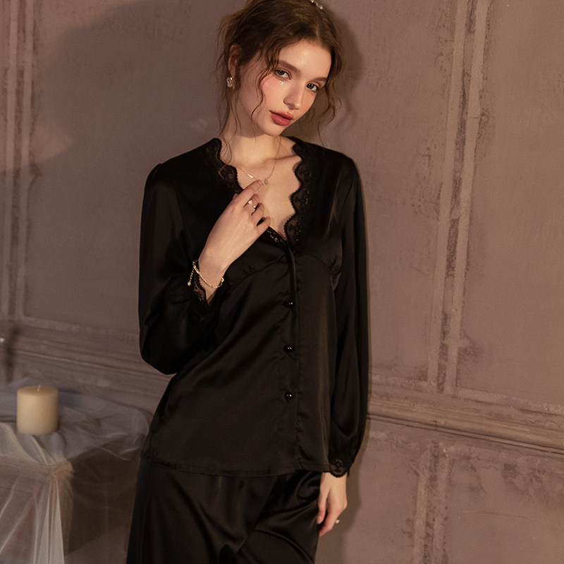 男友家真丝睡衣女春夏季高级感长袖性感开衫2025年家居服两件套装