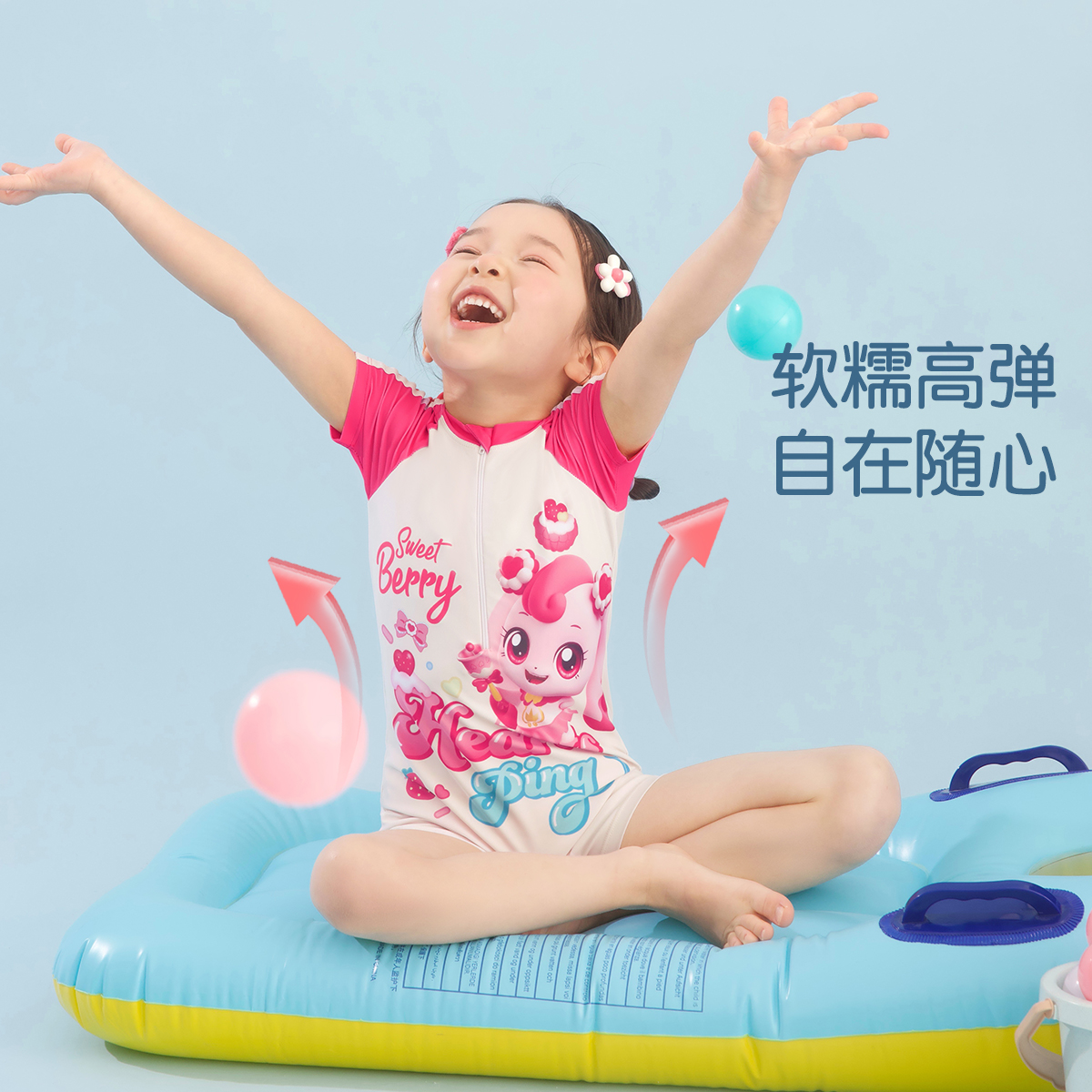 奇妙萌可儿童泳衣女孩新款连体防晒速干衣中小童专业游泳训练装备