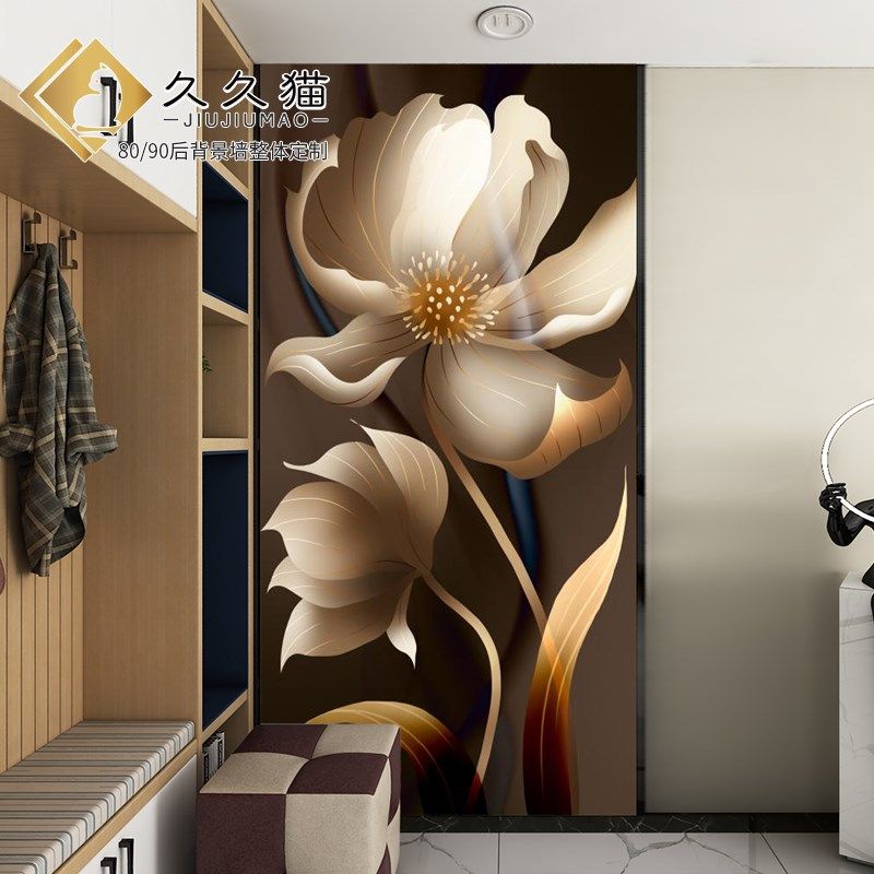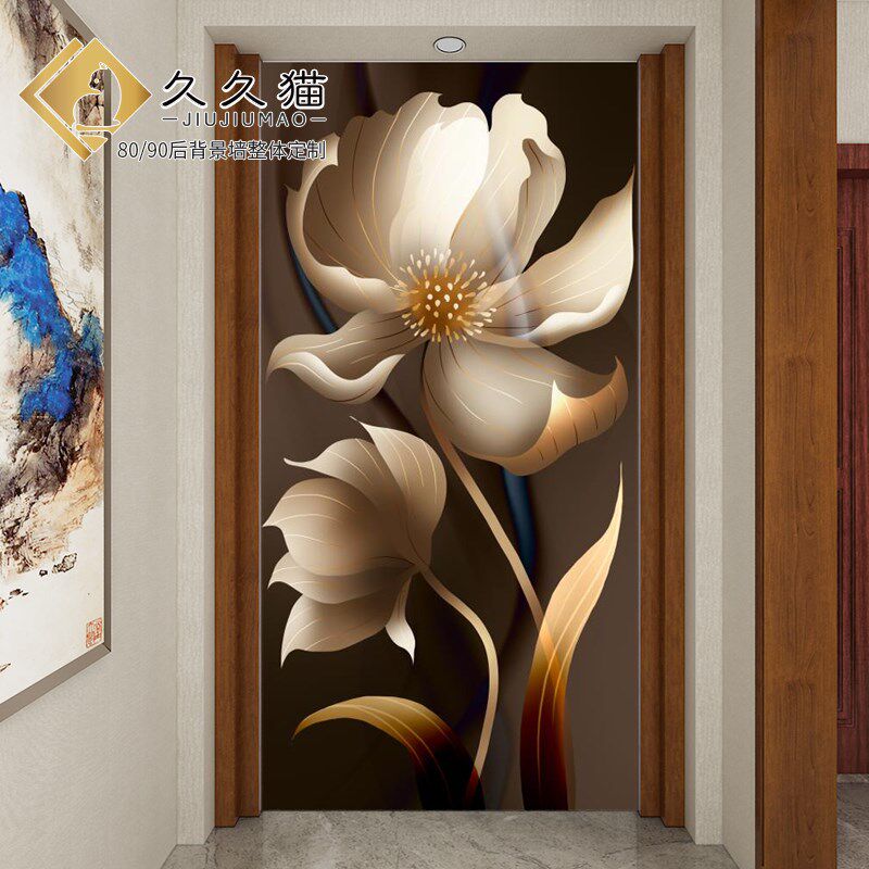 艺术瓷砖背景墙h牡丹花开竖版防水样板房入户玄关墙画全瓷岩板墙
