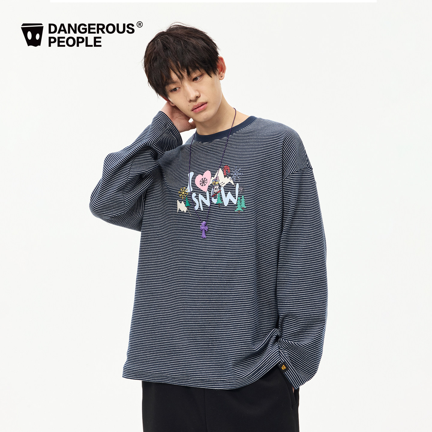 Dangerouspeople薛之谦dsp条纹字母印花长袖T恤慵懒百搭宽松上衣