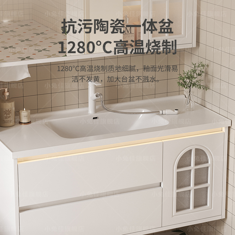 法式浴室柜陶瓷一体盆田园风橡木洗手台盆柜洗漱台洗脸盆卫浴组合