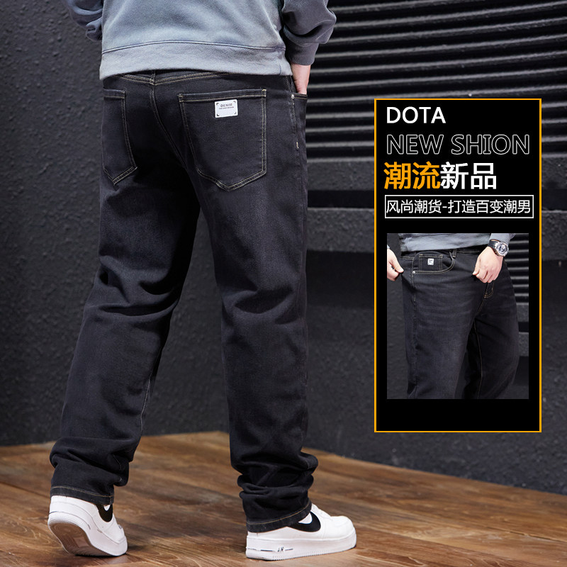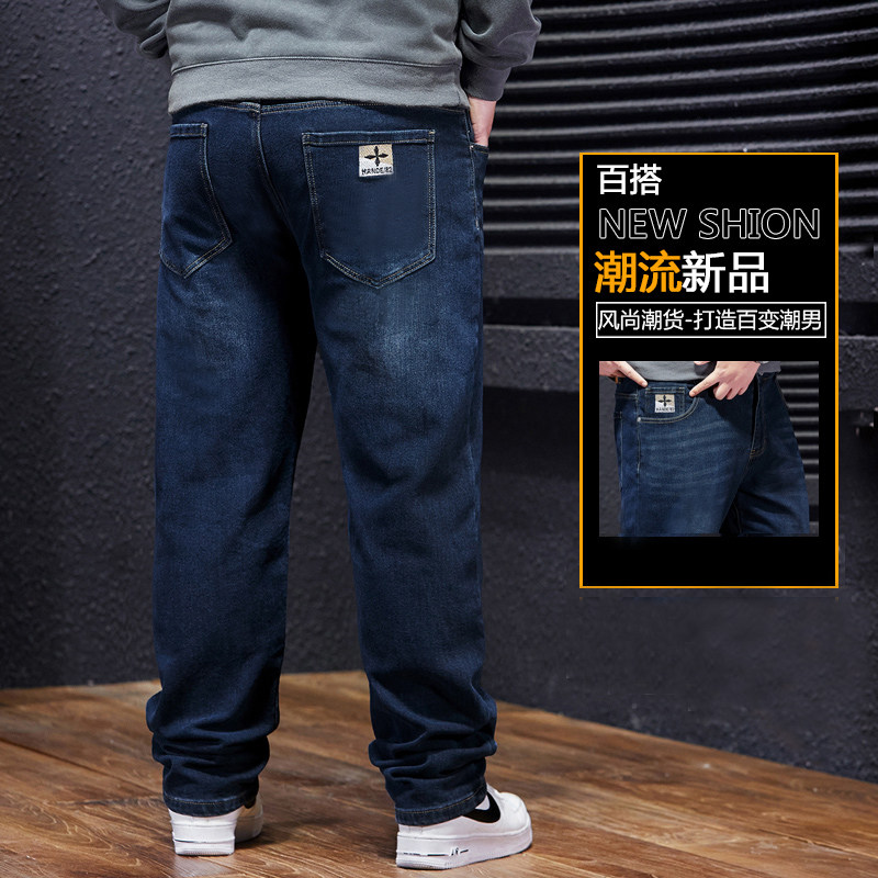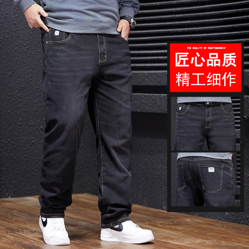 秋冬季350斤弹力牛仔裤男大码宽松直筒胖子加肥加大厚款肥佬高腰