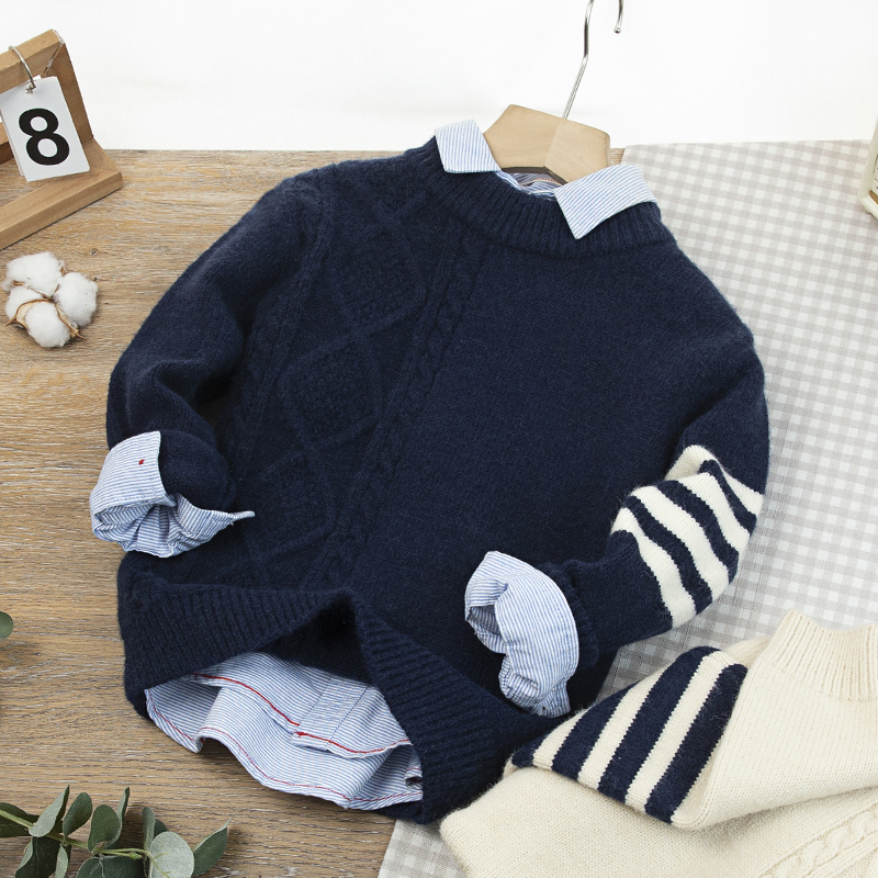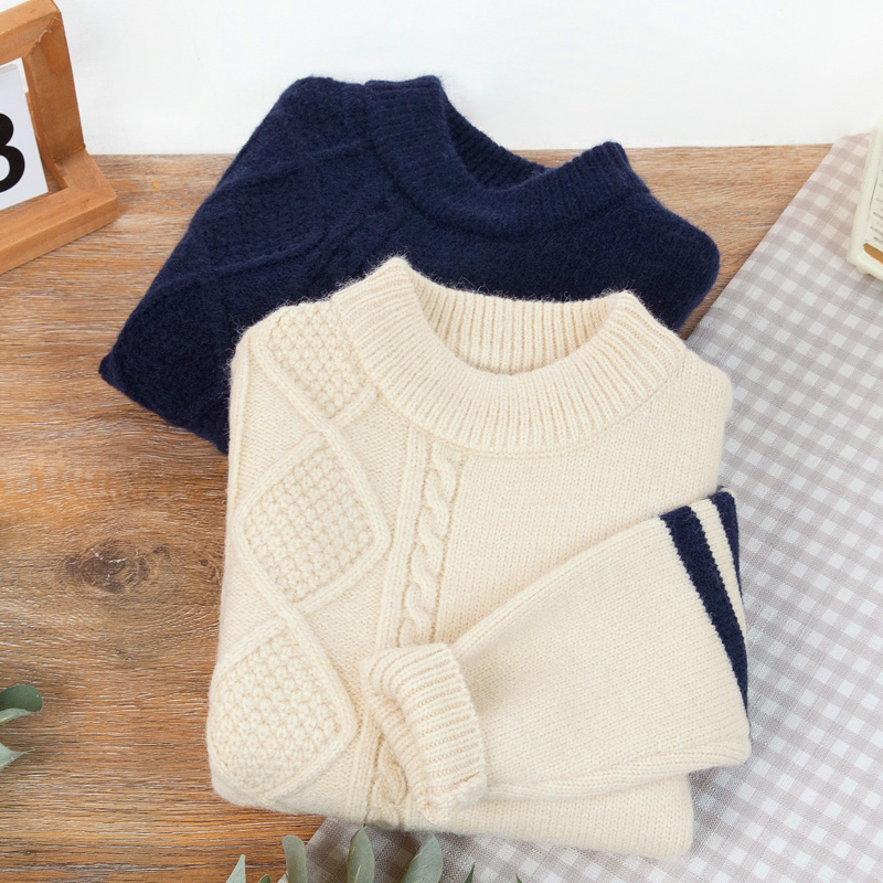 男童毛衣秋冬季新款中大童洋气单边提花儿童装加厚圆领针织打底潮