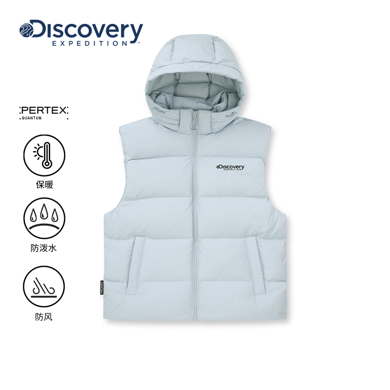Discovery探索冬户外90鹅绒羽绒马甲防风防泼水连帽保暖马夹男女