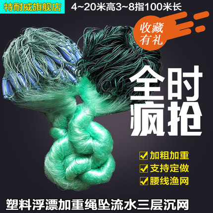 捕鱼网粘网三层沉网大网水库网加重绳坠加粗丝网挂网底网沉网渔网