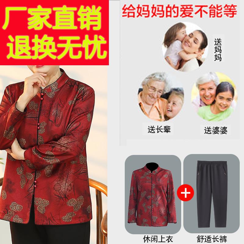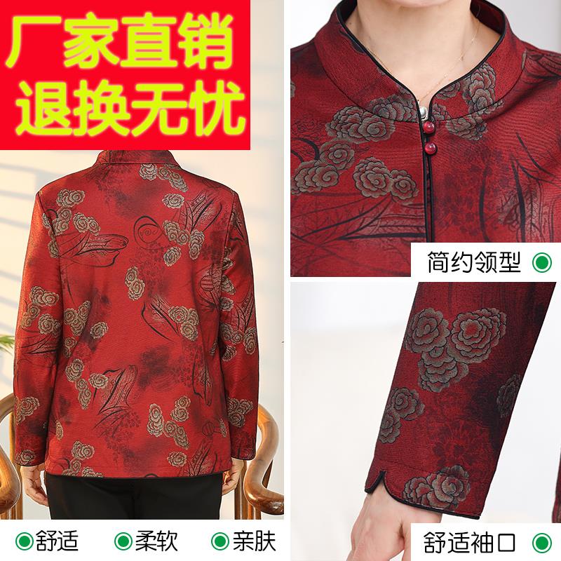 中老年人秋装女奶奶衬衫70岁妈妈春秋长袖老太太唐装衬衣老人衣服