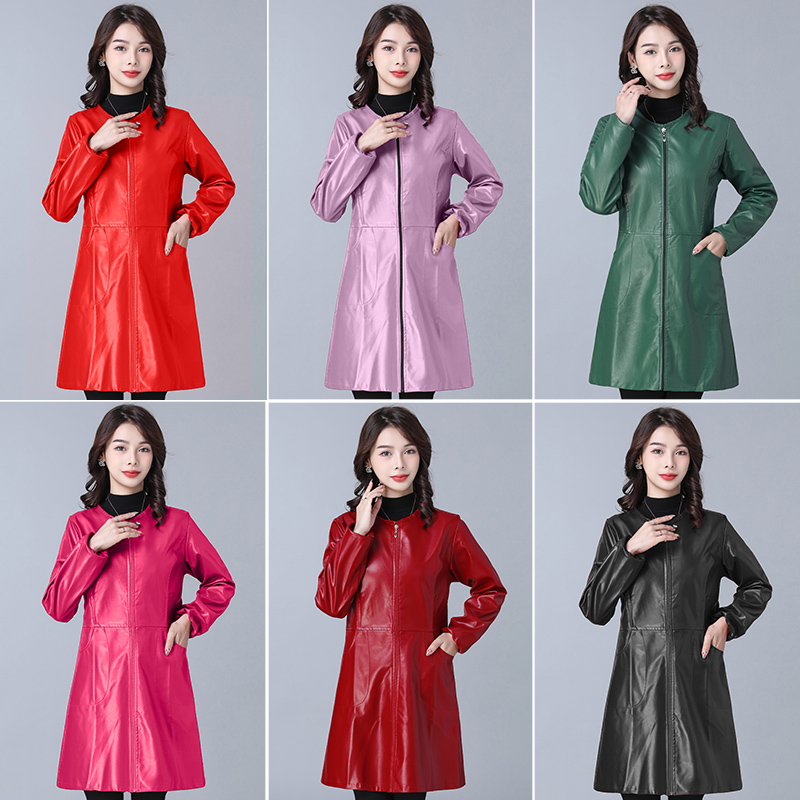 防水防油中长款PU皮女成人长袖正穿围裙拉链修身套羽绒服罩衣外套