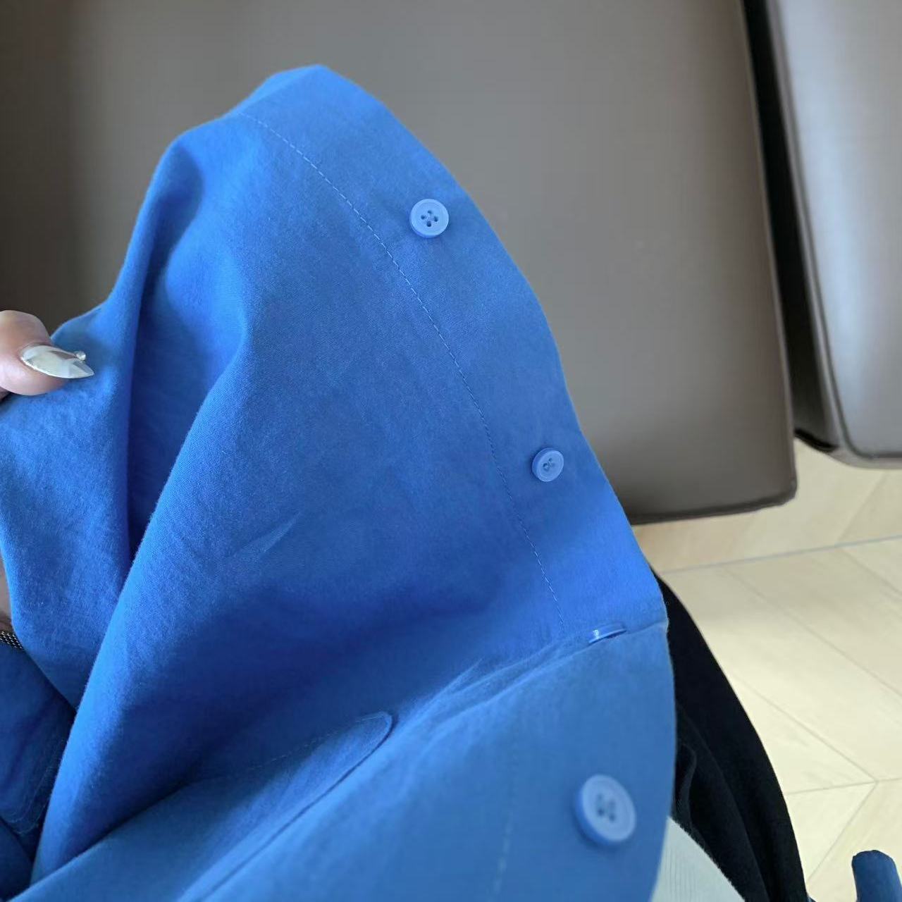 100%棉法式克莱因蓝纯棉衬衫女叠穿内搭宽松遮肉显瘦长袖衬衣外套