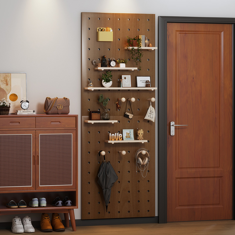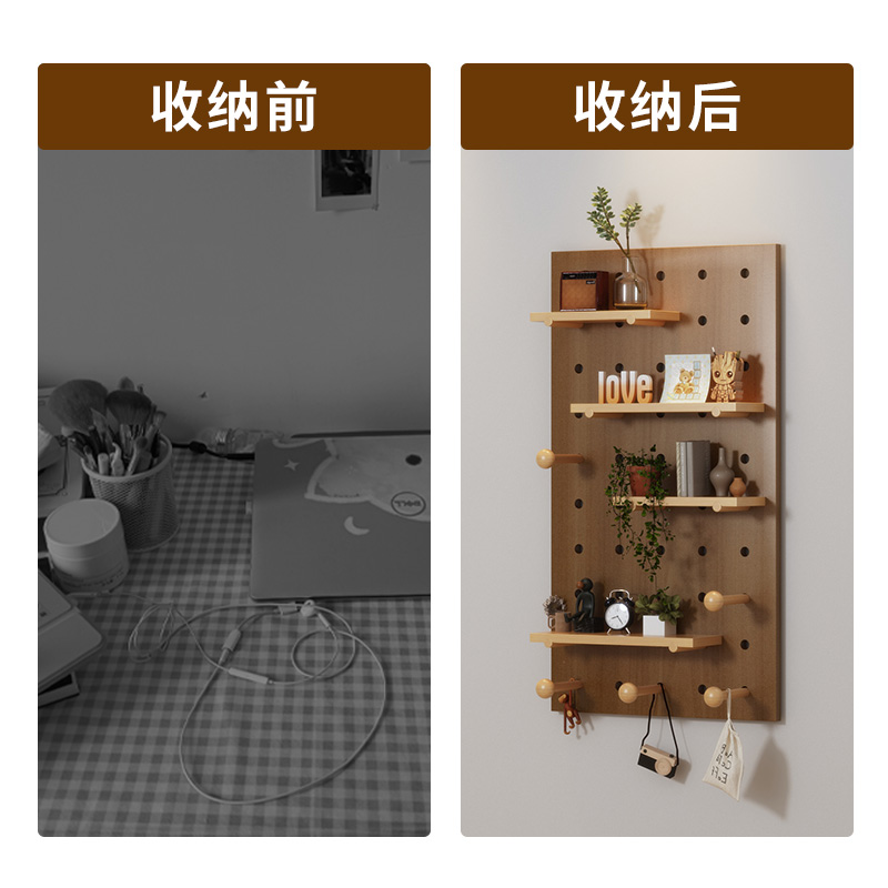 洞洞板实木玄关墙上置物架墙壁木质隔板收纳书架墙面配件工具挂板