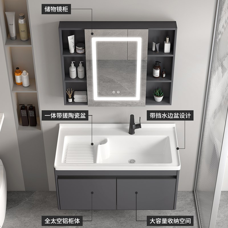 简约太空铝挂墙式浴室柜s组合带搓衣板陶瓷洗手盆洗脸盆洗漱台吊