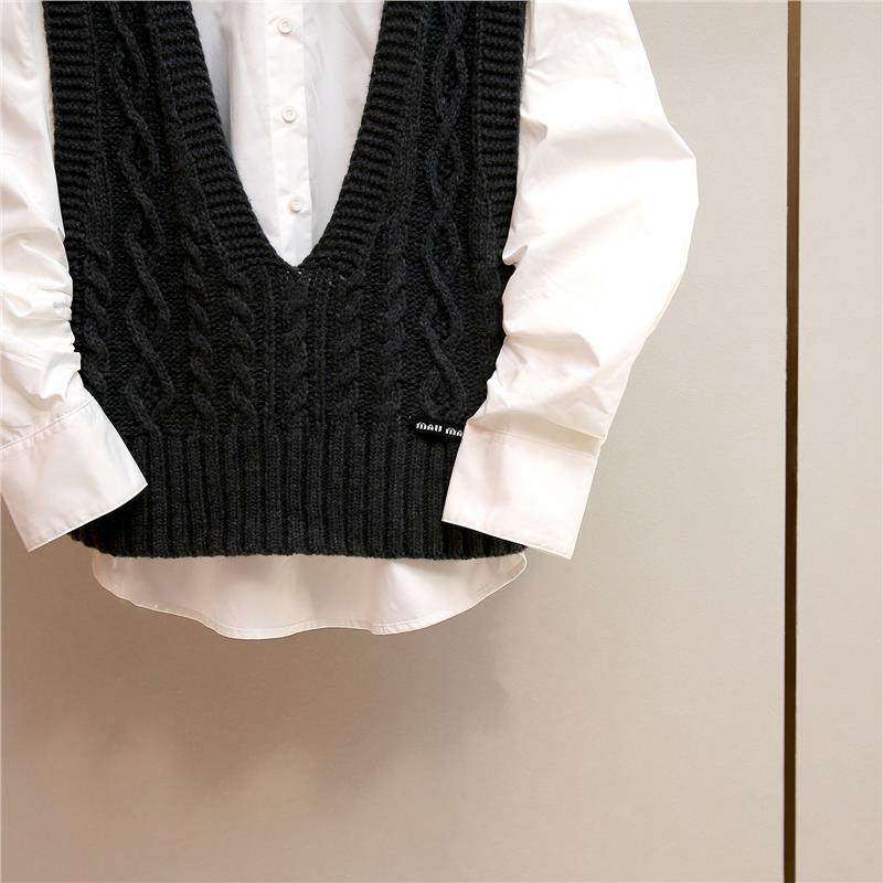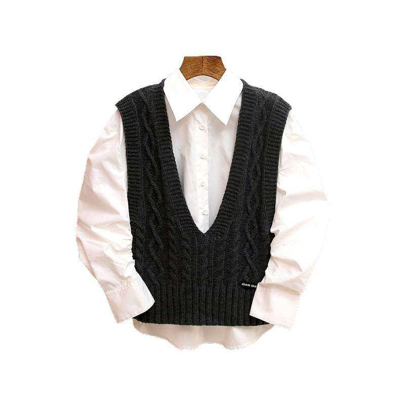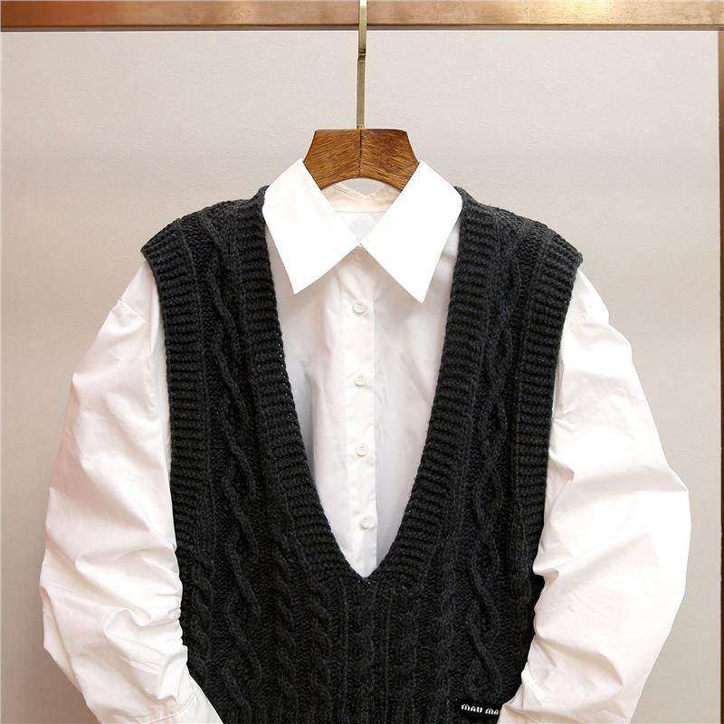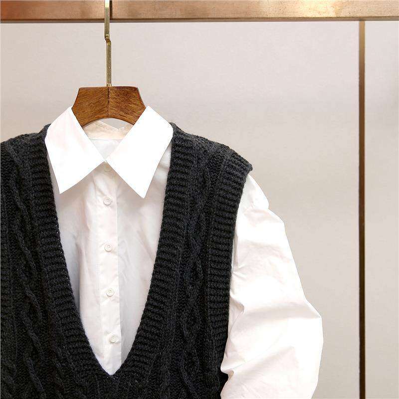 深圳南油高端女装冬季新款韩版学院风减龄时尚针织马甲+衬衫套装