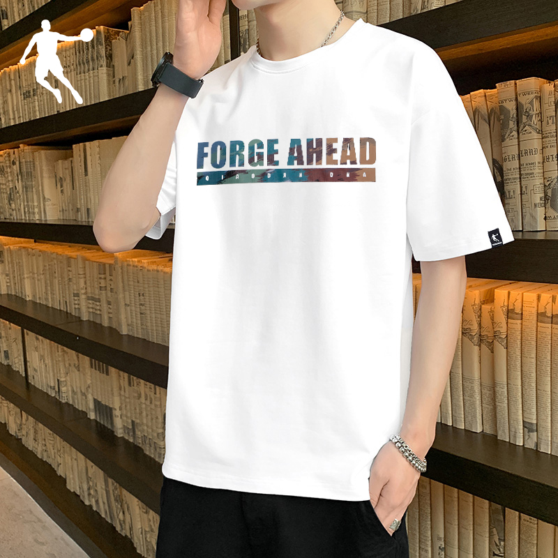 乔丹短袖T恤男白色体恤2025新款夏季半袖圆领男士上衣透气运动服