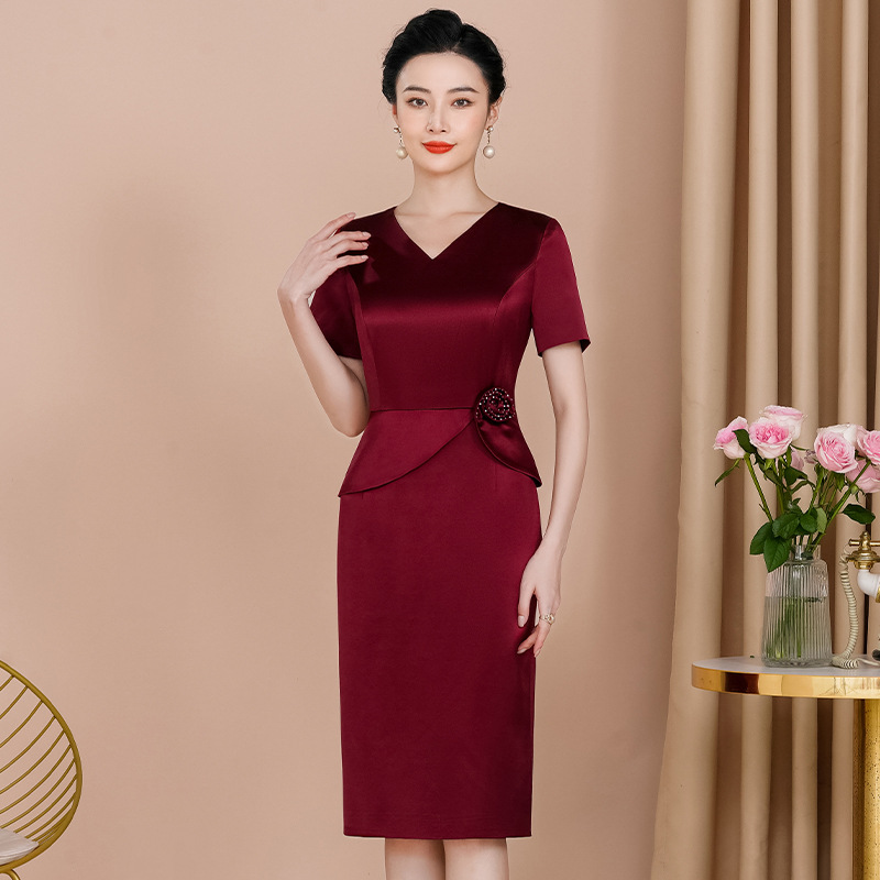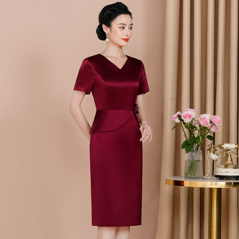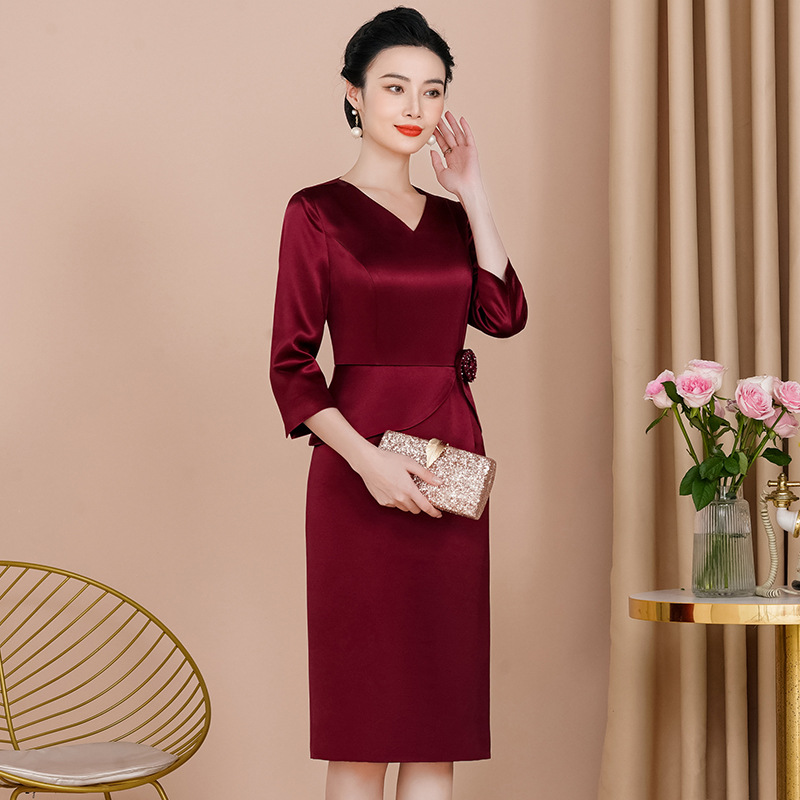 喜婆婆婚宴装2026春秋新款遮肚显瘦连衣裙年轻喜妈妈婚礼服酒红裙