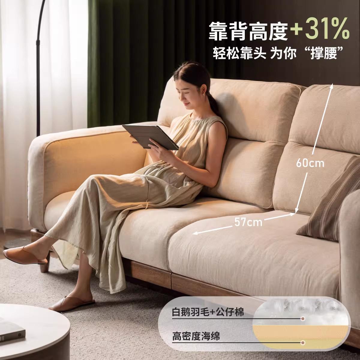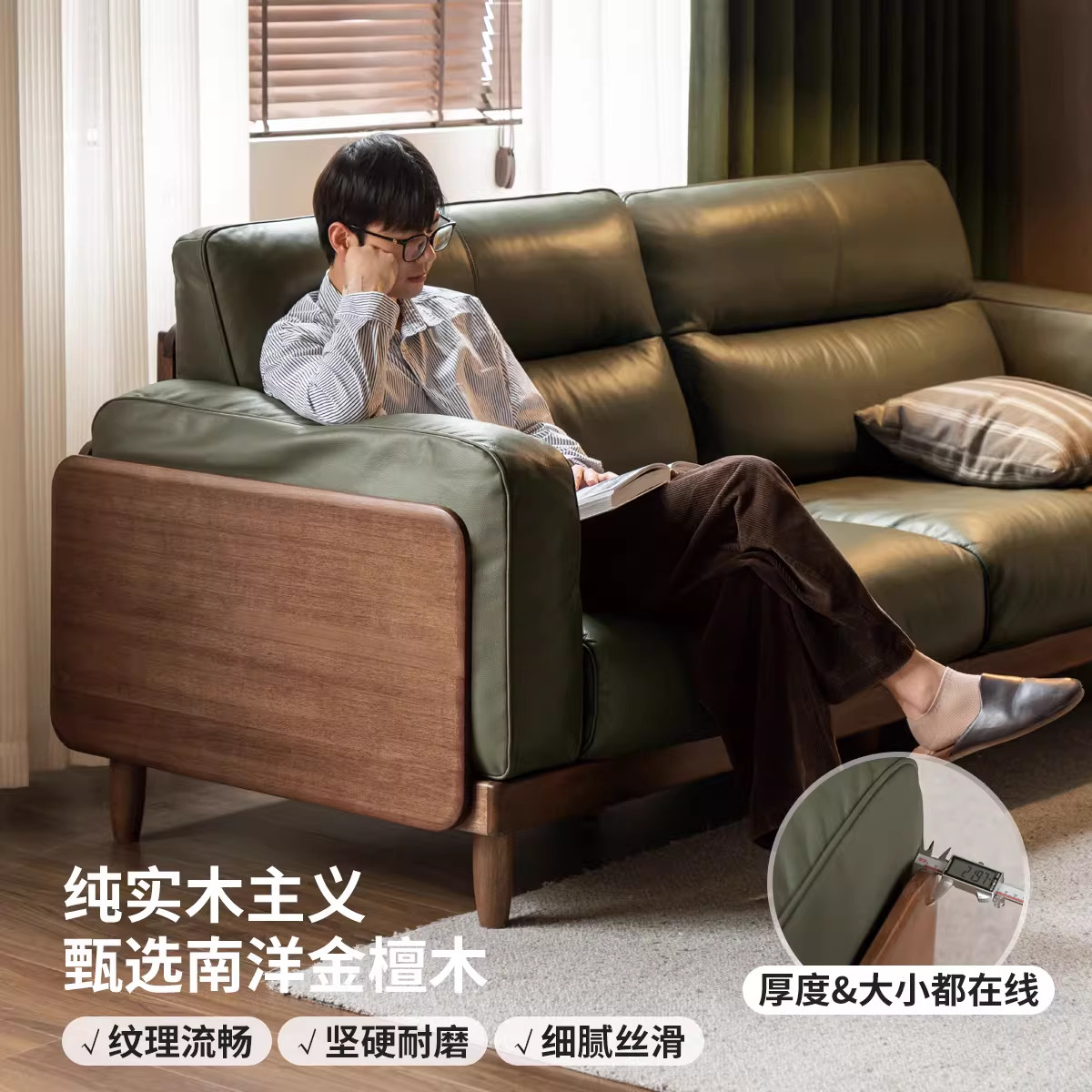 源氏木语百伦沙实木沙发头层牛皮