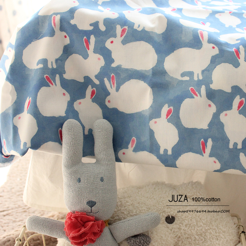 水彩兔环保高支数码纯棉布料衣服裙子枕套被套床单全棉手工面料