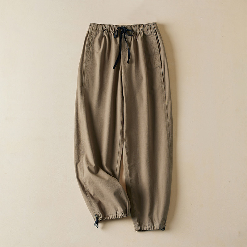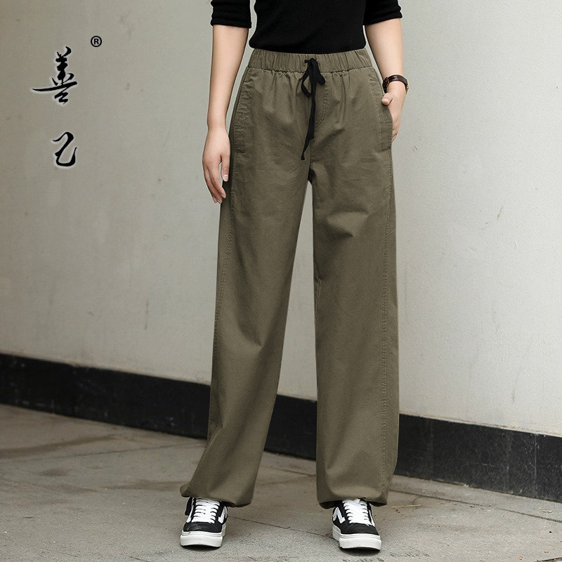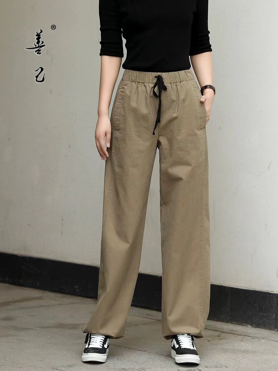 外贸意大利原单卡其色工装裤女松紧高腰宽松百搭休闲束脚哈伦裤潮