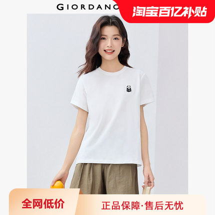 佐丹奴T恤女装纯棉i与e的日常主题刺绣圆领针织短袖T恤 05395382