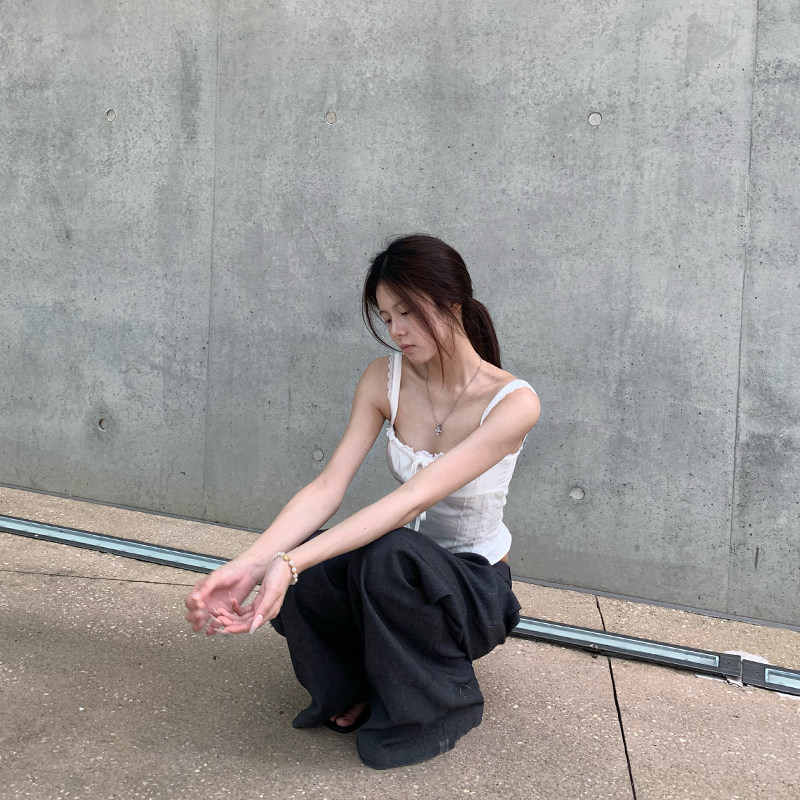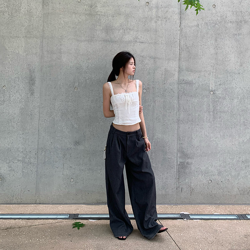 E7Q8 韩系新款显瘦抹胸吊带性感纯欲绑带上衣女修身百搭时尚背心