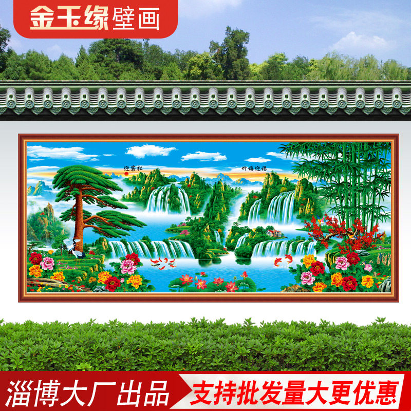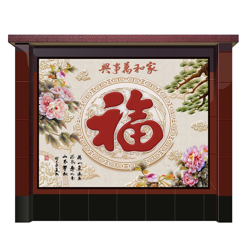 定制农村迎门墙影壁别墅庭院室外户外背景瓷砖福字风景山水照壁画