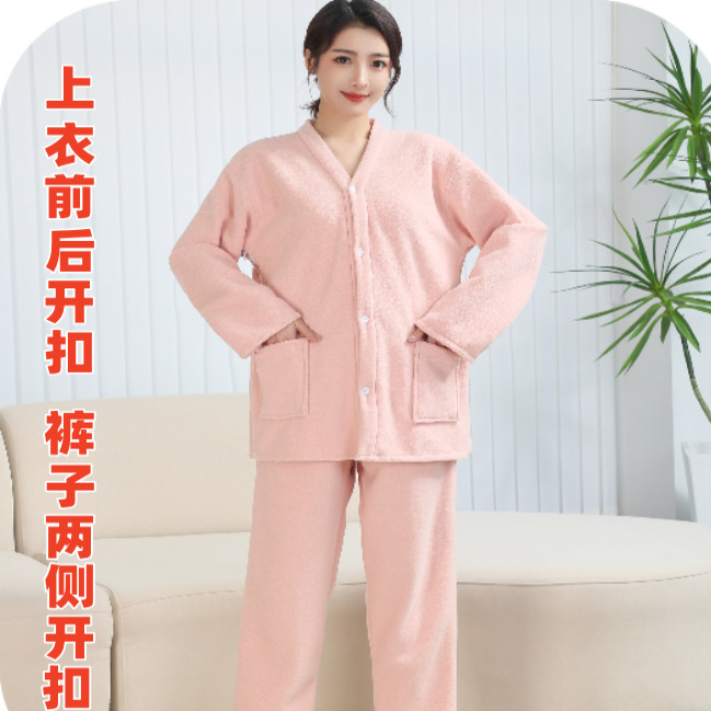 长袖艾灸服男女冬款加绒加厚纯棉理疗服前后背开扣按摩服针灸拔罐
