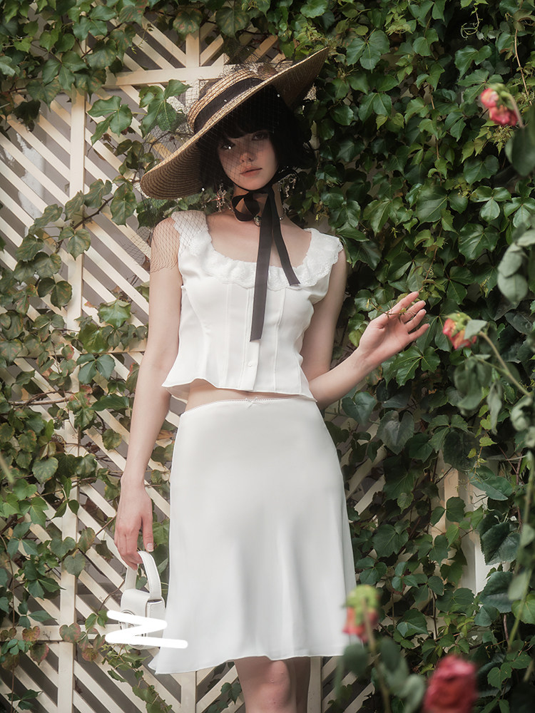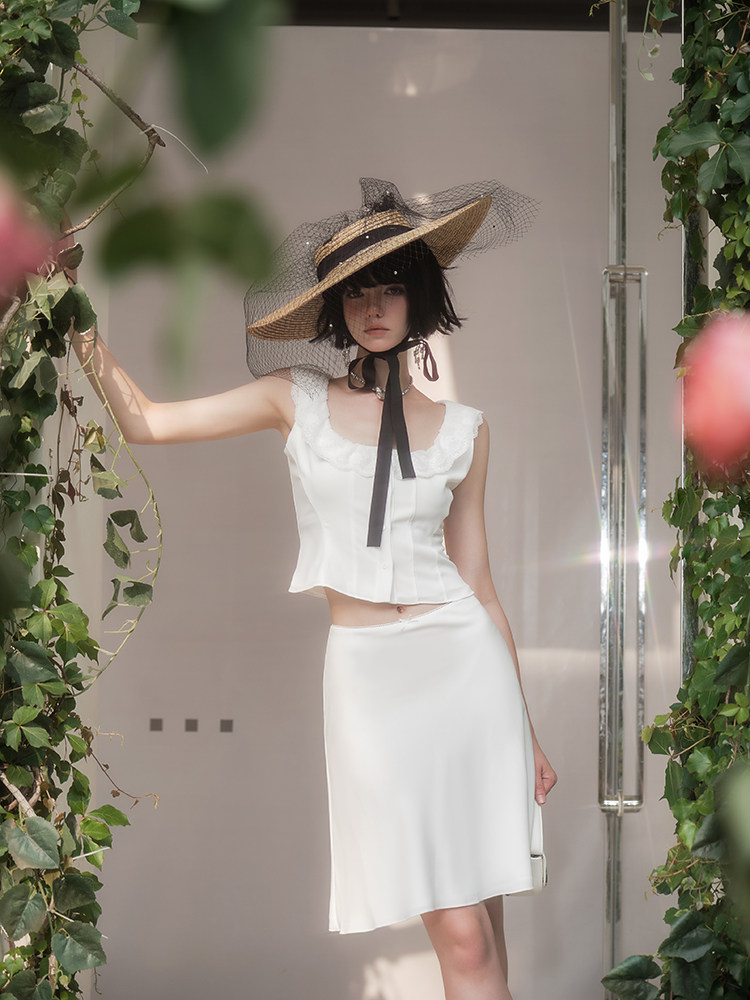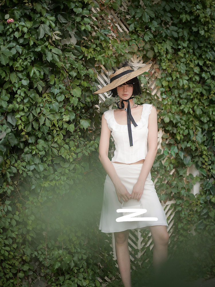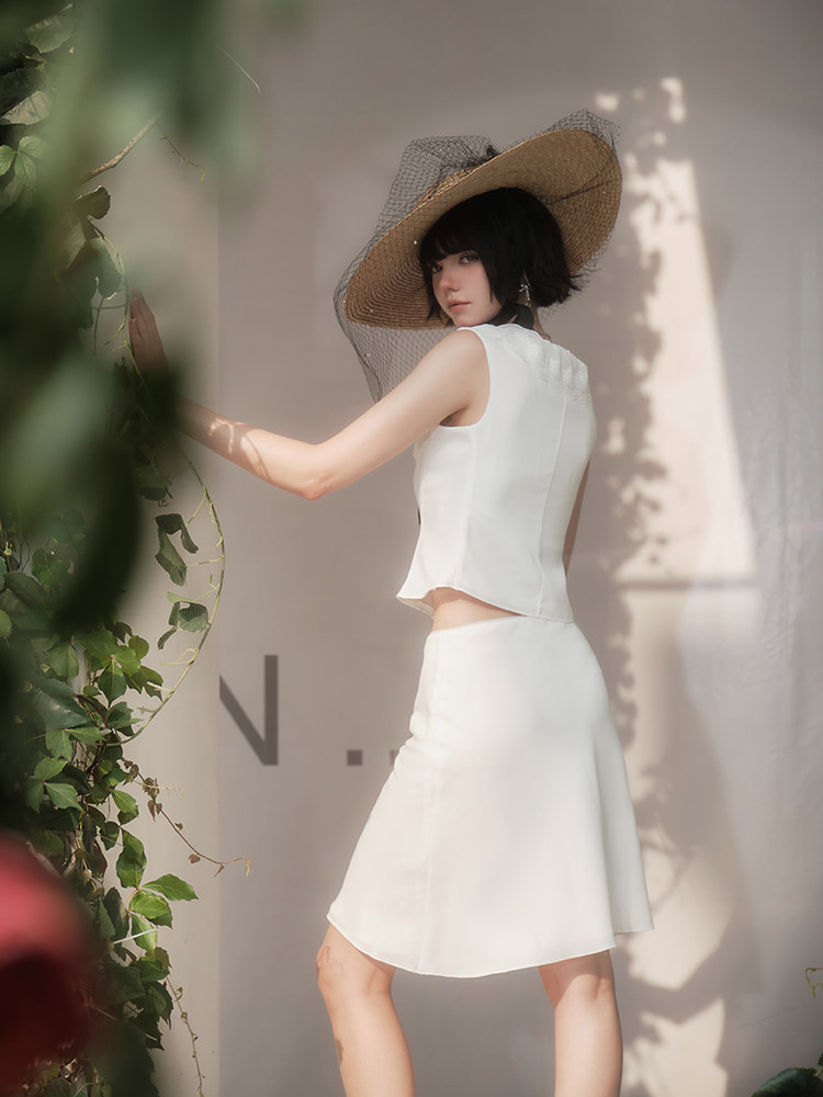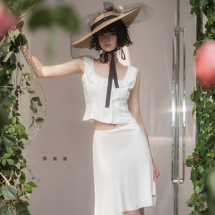 Forevercan女装夏季新款法式时尚套装气质名媛风背心鱼尾裙两件套