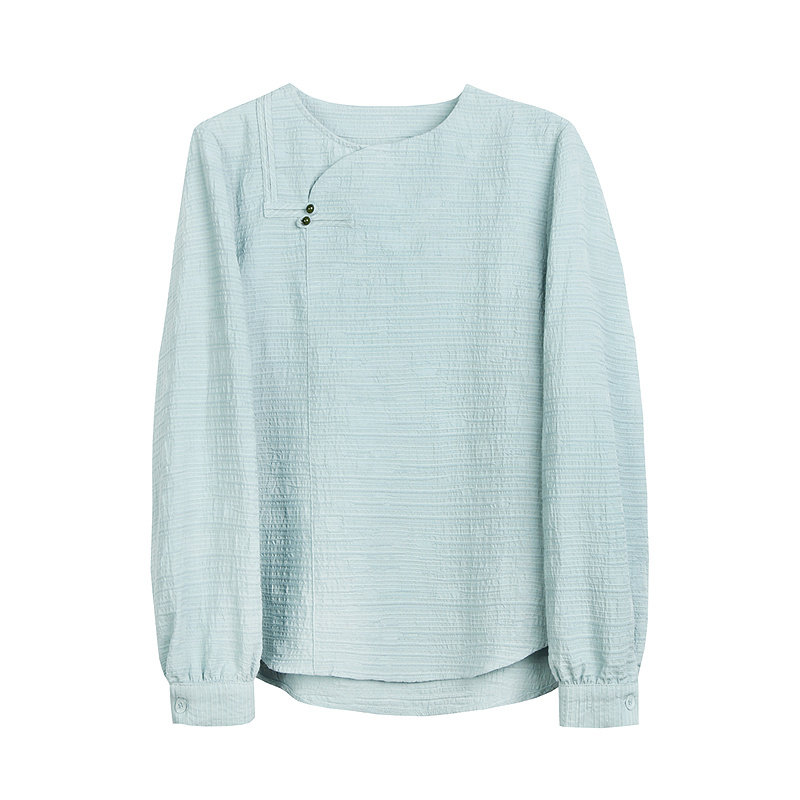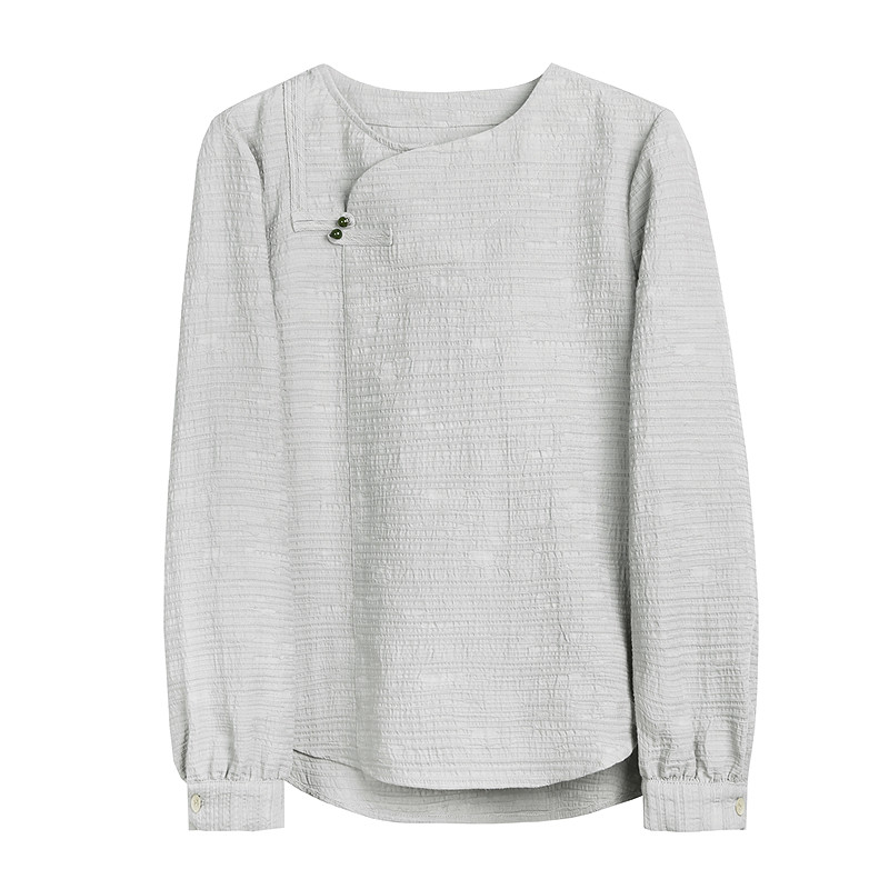 布景长袖衬衫女春季新款国风新中式肌理感宽松纯色衬衣1112