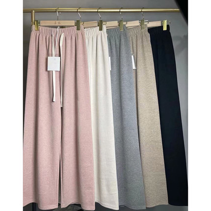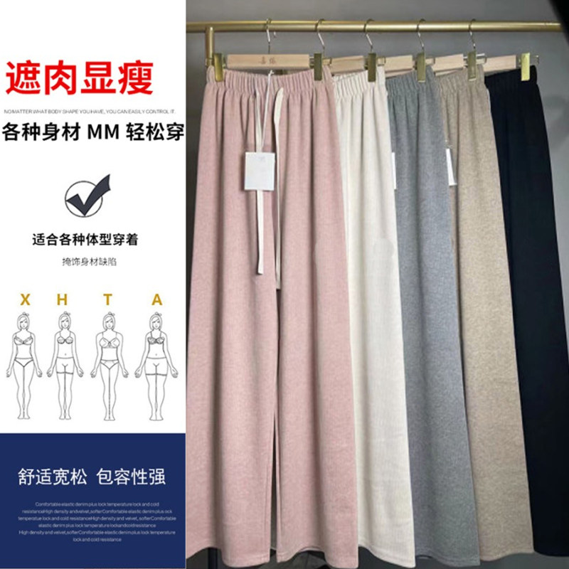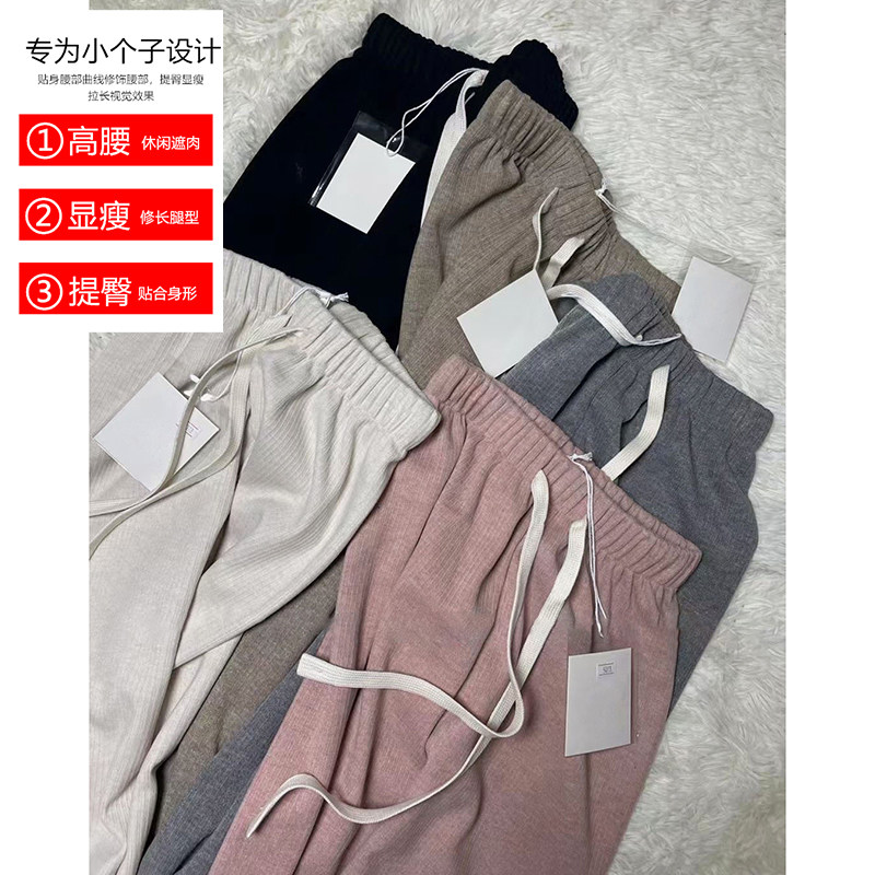 小个子150cm针织阔腿裤女秋冬软糯抽绳垂感遛弯155xs休闲直筒长裤