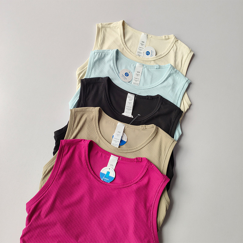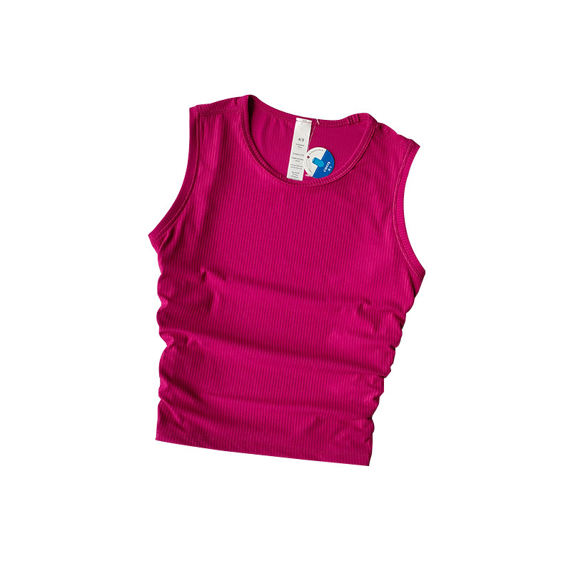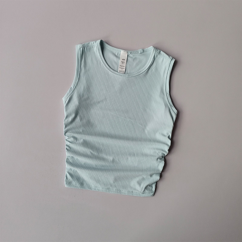 夏季裸感工字瑜伽背心女褶皱修身显瘦速干运动跑步健身上衣外穿