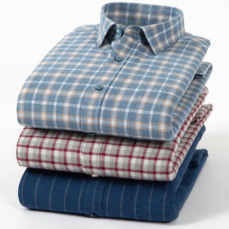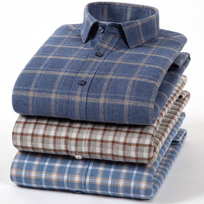 男士冬季保暖内衣加绒加厚纯棉衬衫休闲青中年全棉长袖格子衬衣男