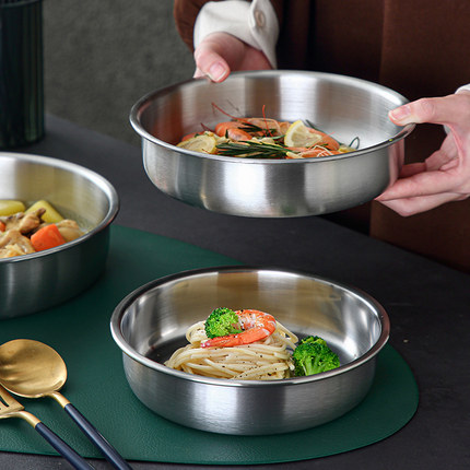 onlycook 304不锈钢盘子圆盘备菜盘家用饺子托盘蒸盘深盘餐具蒸碗