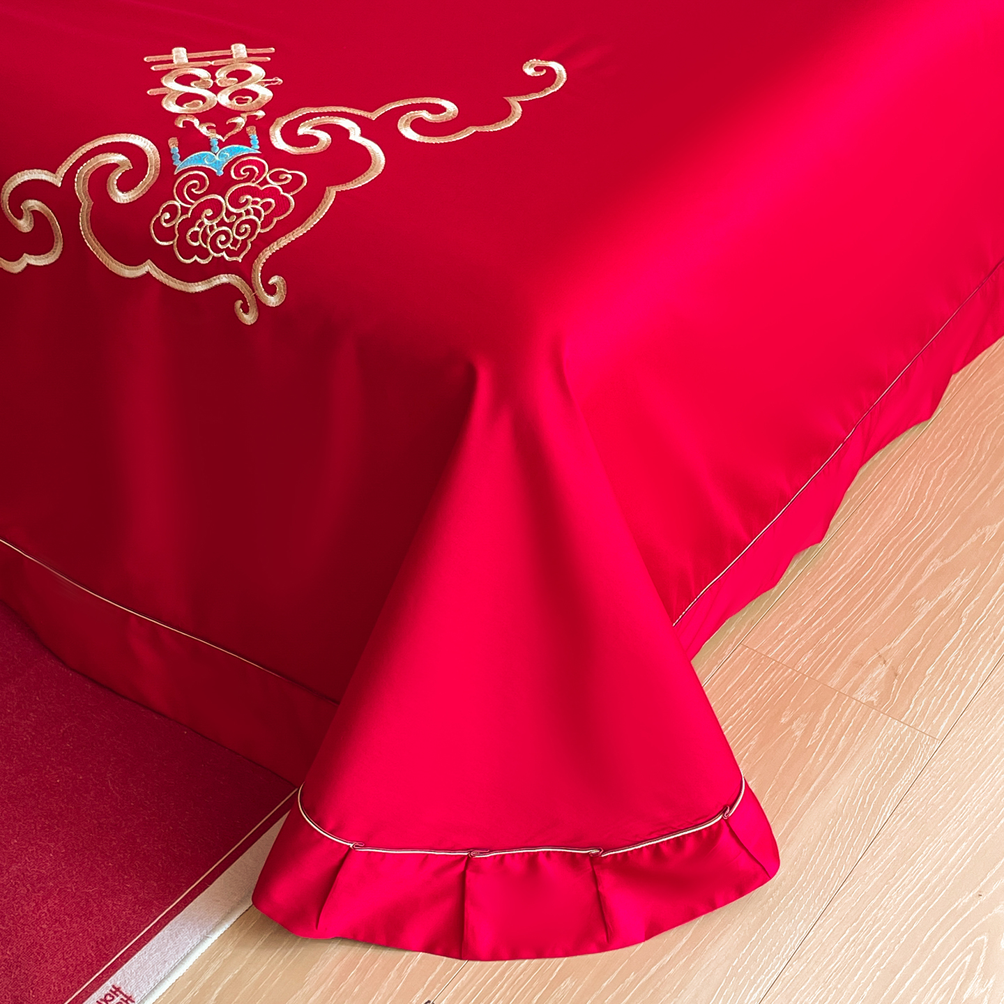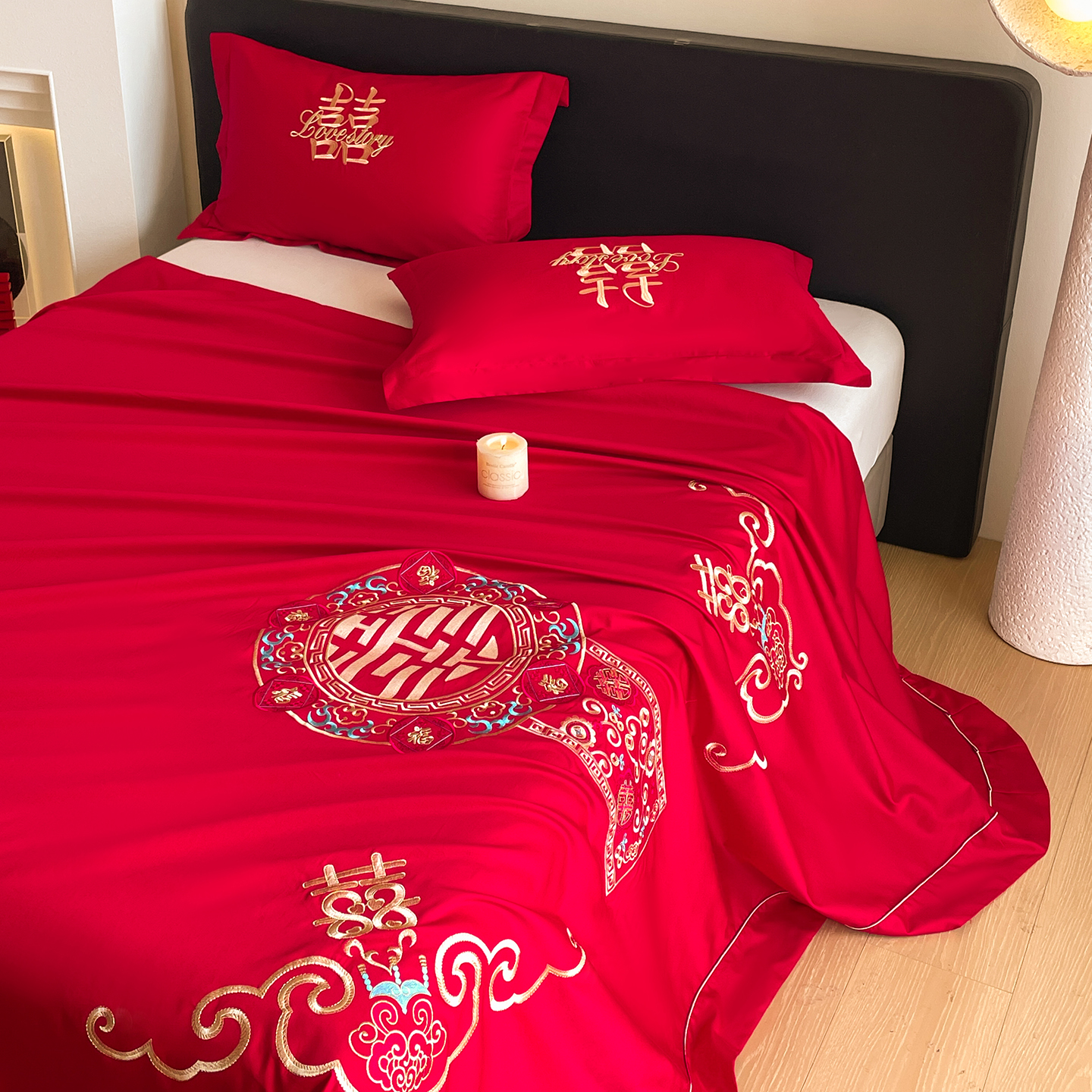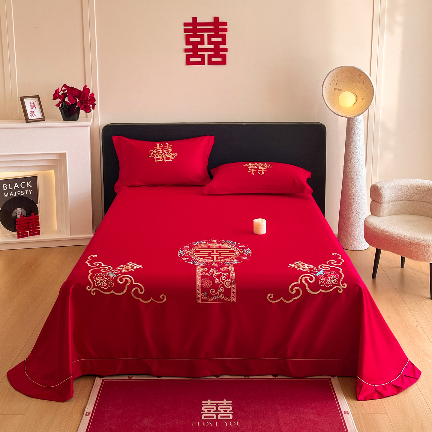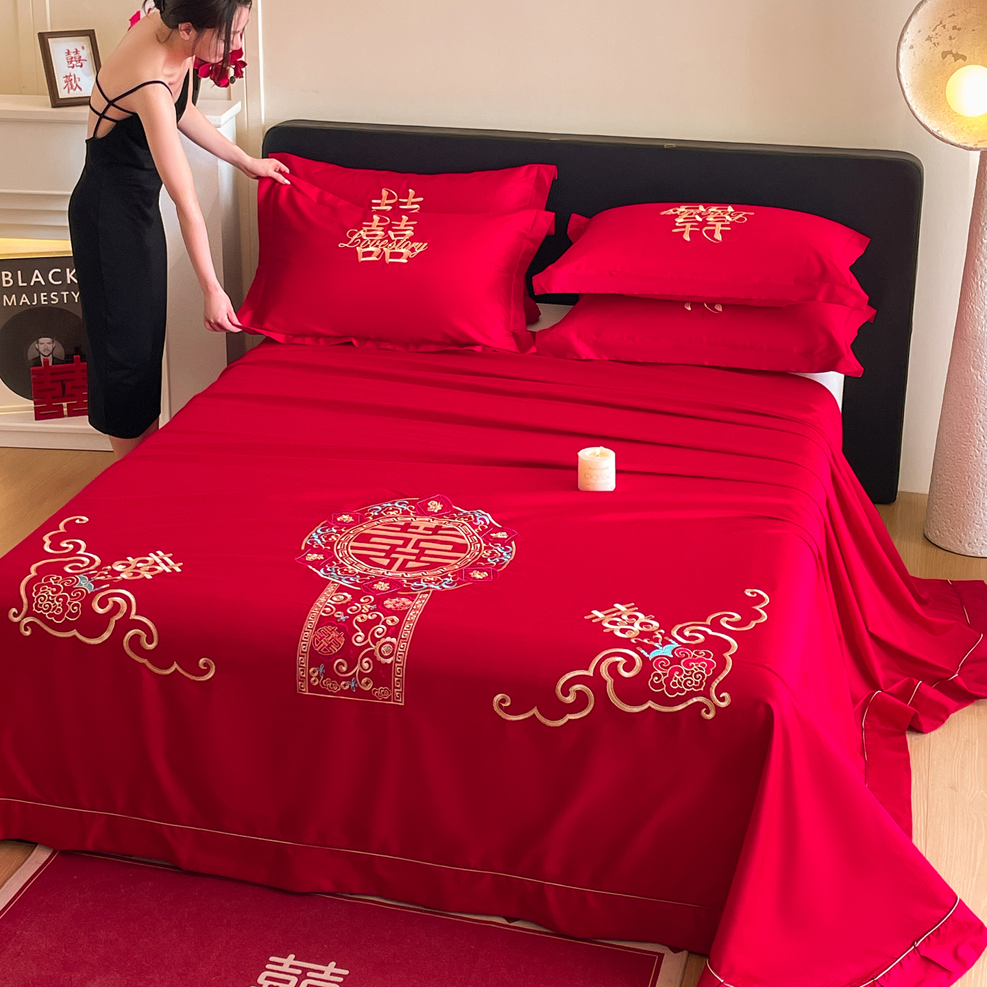 中式纯棉结婚床单红色单件婚房布置2025新款女方出陪嫁喜庆三件套