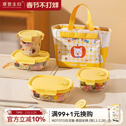 摩登主妇玻璃保鲜盒食品级密封饭盒微波炉加热带饭餐盒水果便当盒