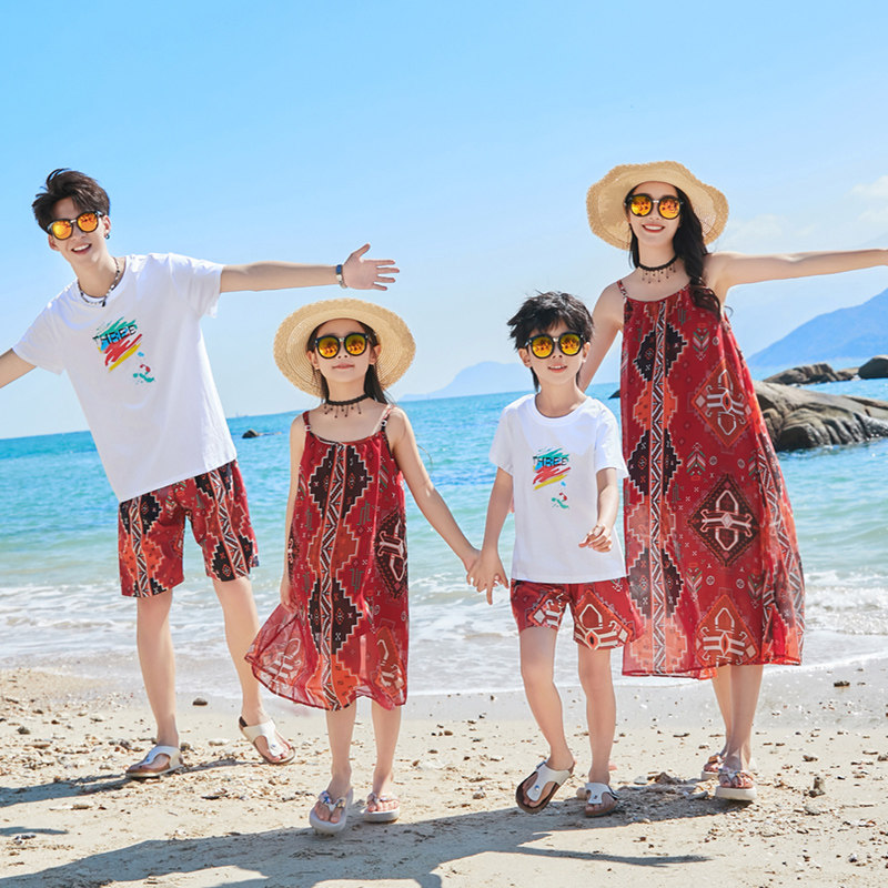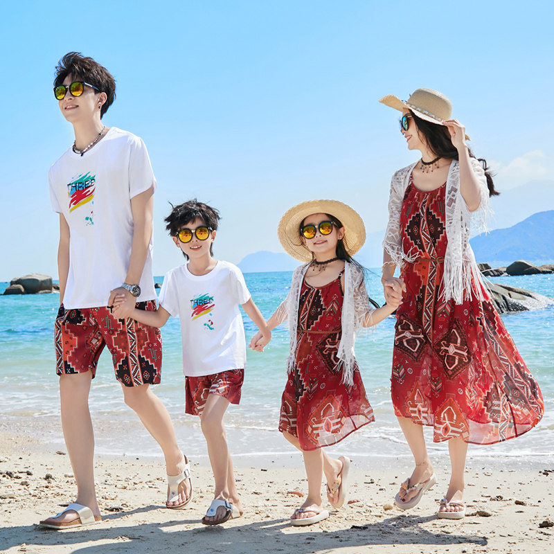 海边度假沙滩裙亲子装一家三口