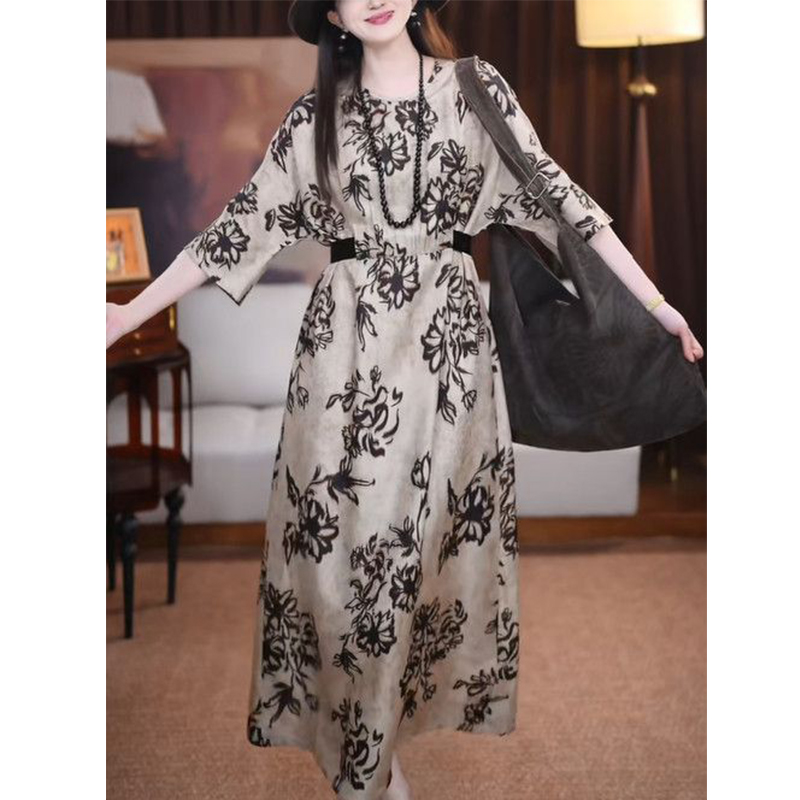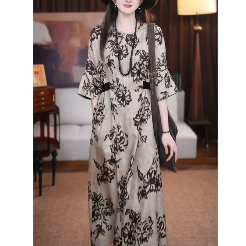2025新款印花长款裙子百搭时尚宽松夏季花新中式气质国风连衣裙