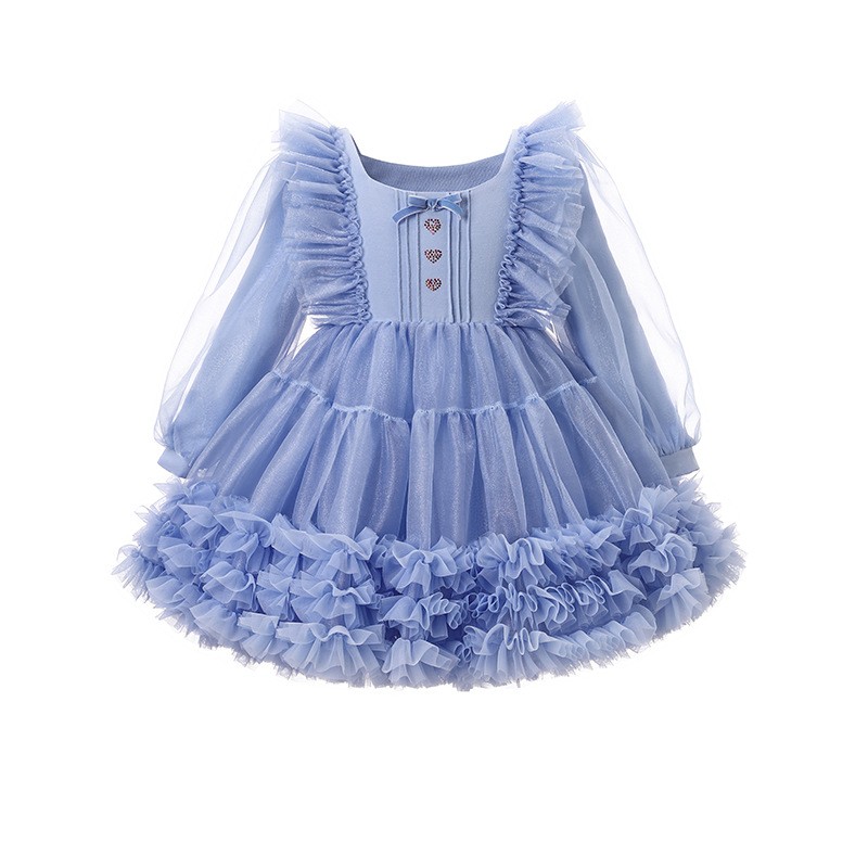 女童长袖连衣裙春秋季新款艾莎公主裙洋气生日礼服裙儿童蓬蓬