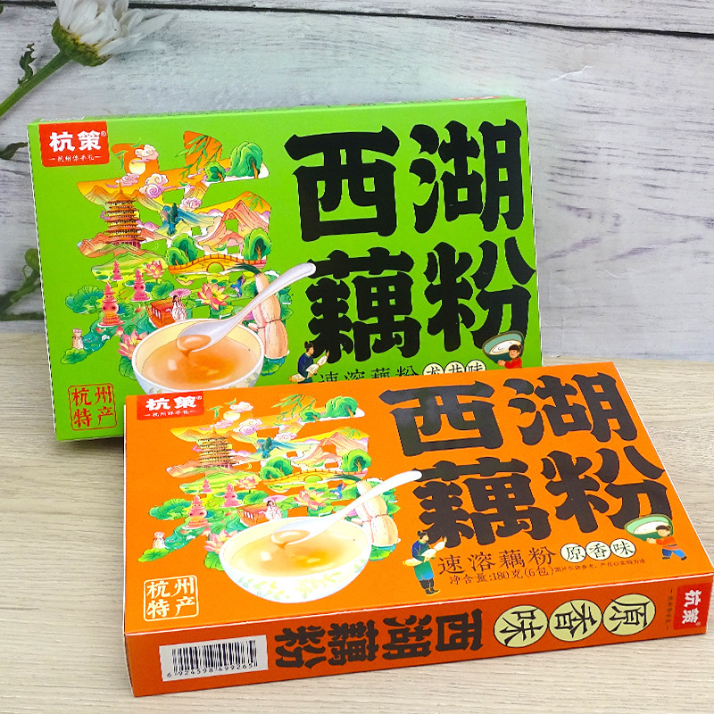 杭策西湖藕粉桂花红枣龙井原味180g盒装速溶莲藕粉杭州特产伴手礼