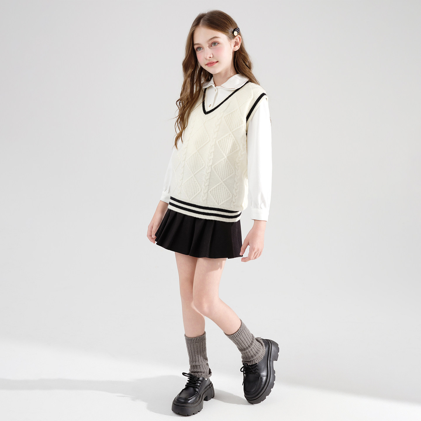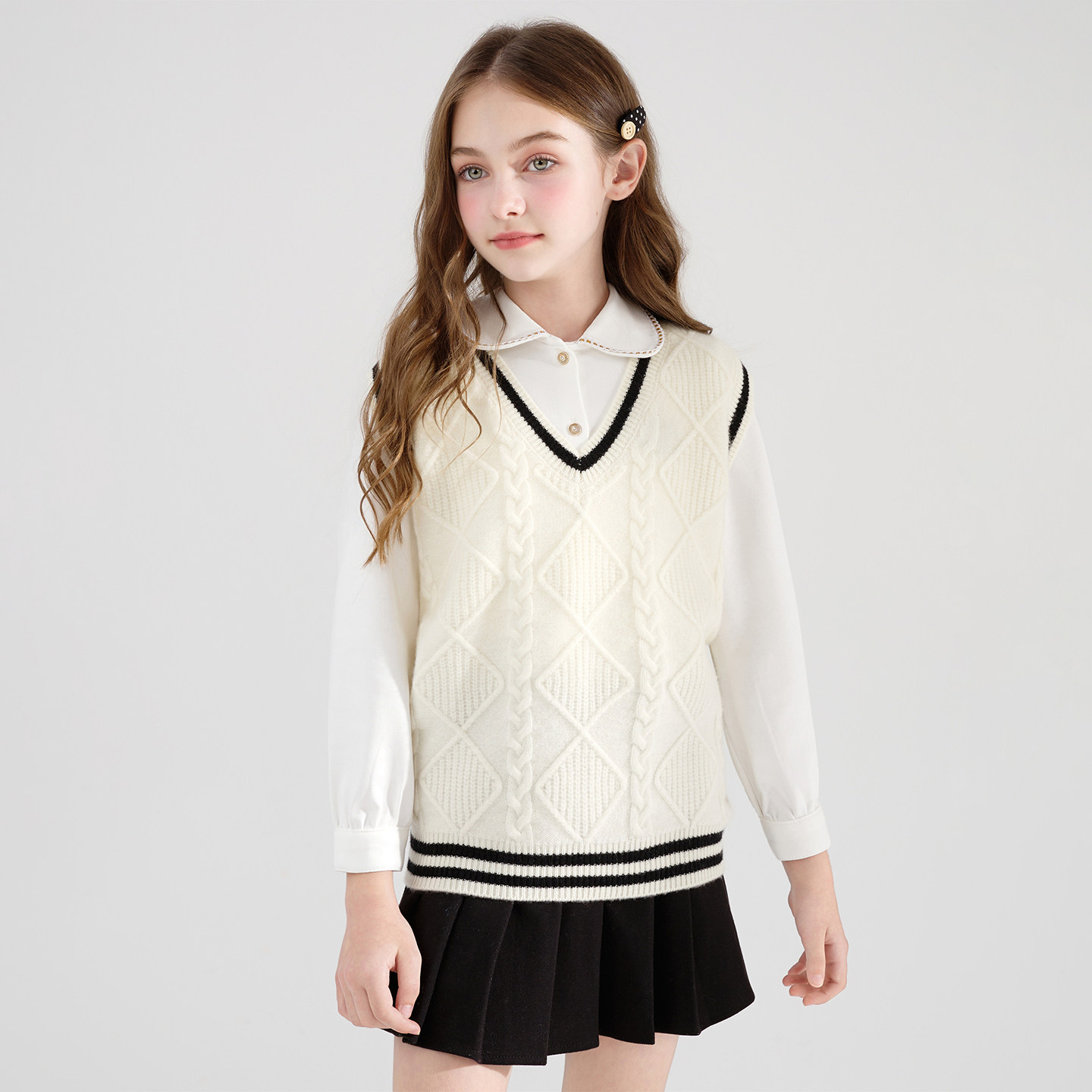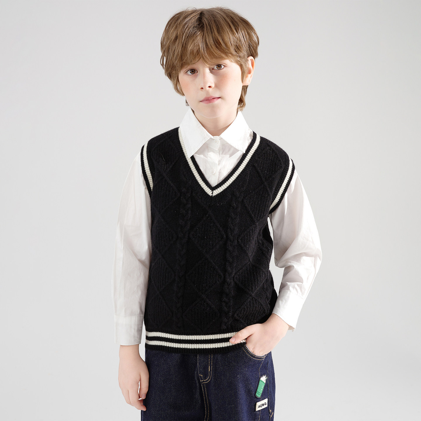 【100%纯羊毛】儿童V领马甲