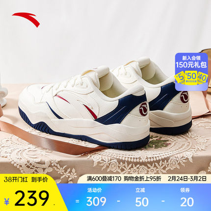 安踏波浪鞋4丨网球风复古撞色时尚板鞋女春季小白鞋百搭运动鞋