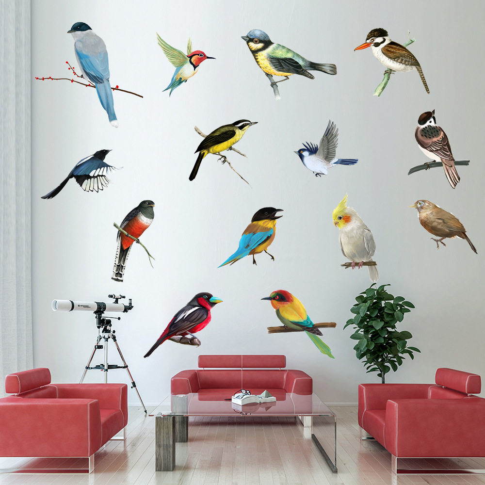 自粘防水遮污喜鹊树枝小鸟鹦鹉墙贴客厅卧室儿童房装饰画小鸟贴纸